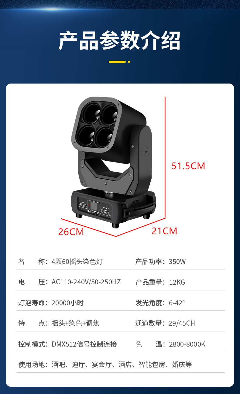 | Número de artículo | Cuatro luces de teñido de sacudida enfocadas |