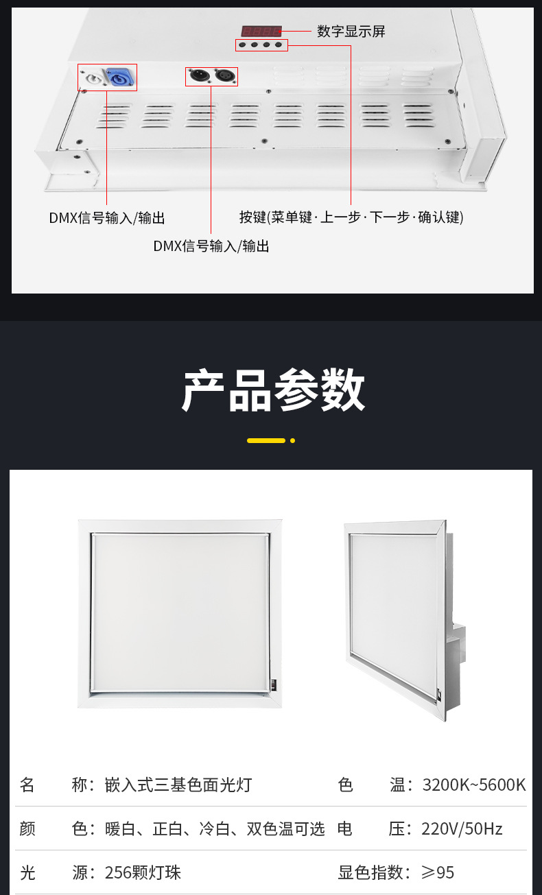 Embedded LED tres colores primarios luz suave sala de conferencias Luz de superficie plana Luz de relleno de cine y televisión iluminación eléctrica tres colores primarios