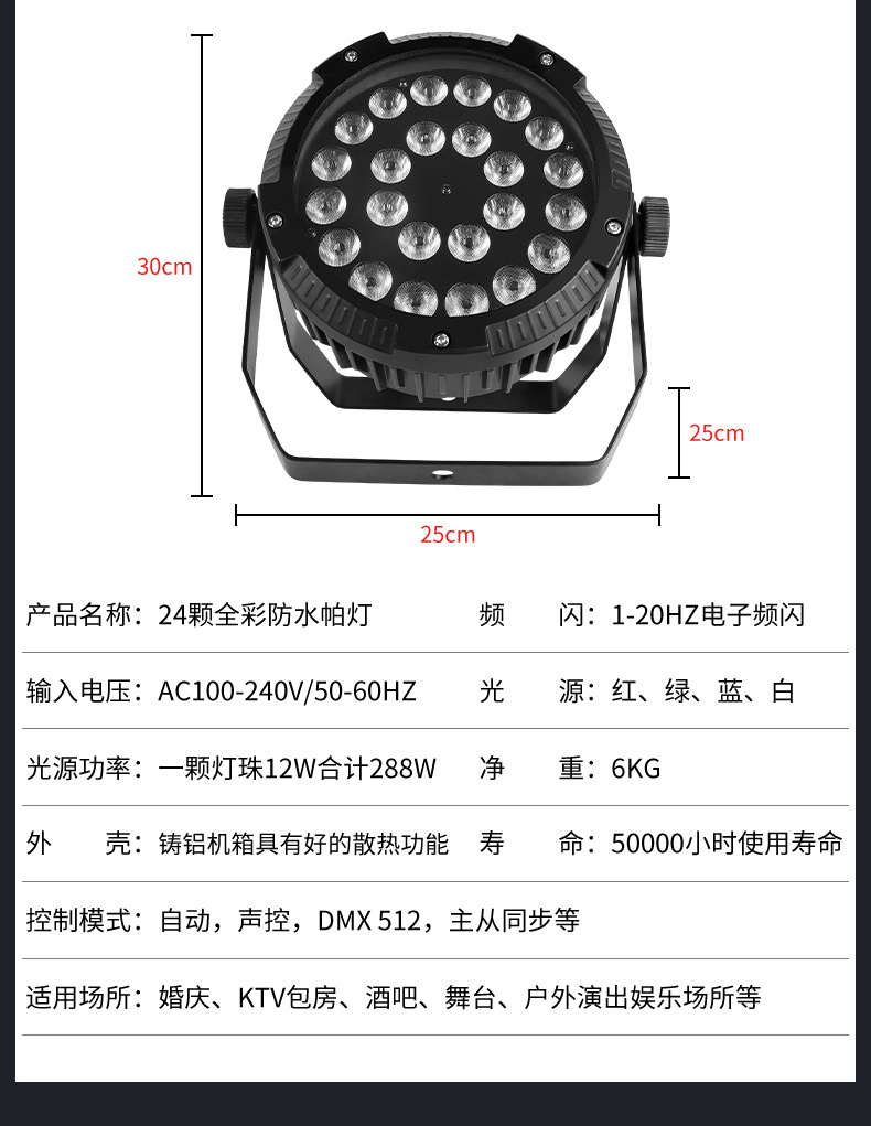 Wenjing 24 impermeable par luz a todo color Cuatro en Uno equipo de luz de escenario al aire libre Luz de rendimiento luz teñida Luz de computadora