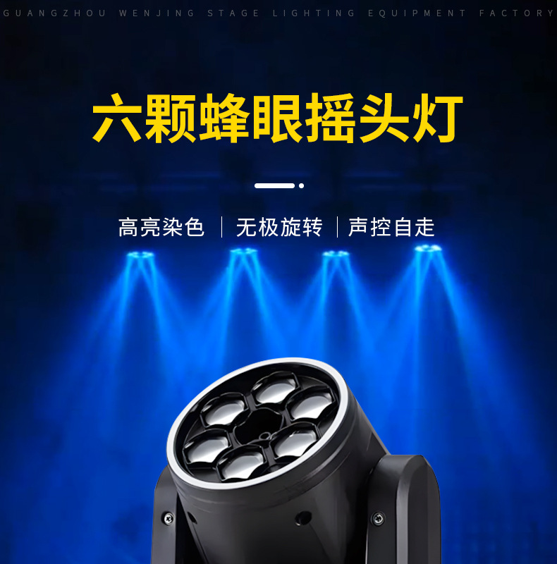 6 Ojo de abeja cabeza móvil luz de la barra de iluminación de la atmósfera de color KTV proyector de luz láser de luz de flash de colores luz del disco
