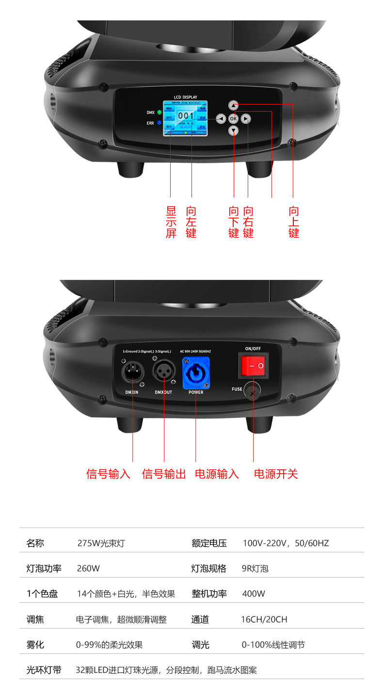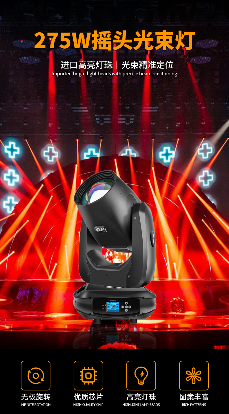 Wenjing lámpara de escenario 275W Luz de haz de luz controlada por voz Luz de velocidad LED cabeza móvil equipo de luz barra de luz giratoria fabricante