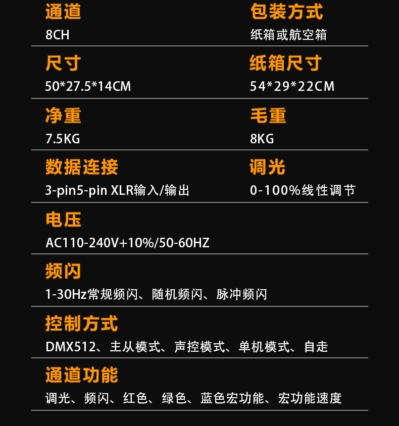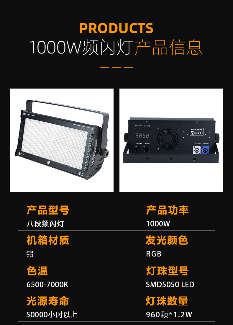 Wenjing LED de ocho segmentos de luz estroboscópica 1000W a todo color segmentado luz estroboscópica RGB bar caballo corriendo luz estroboscópica luz ambiente