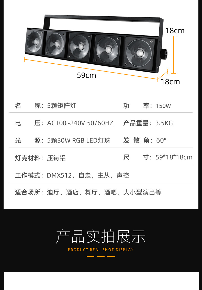 Wenjing Luz de matriz de LED5-head de escenario Cuatro en Uno COB cuentas de lámpara de colores sola luz blanca barra opcional luz decorativa
