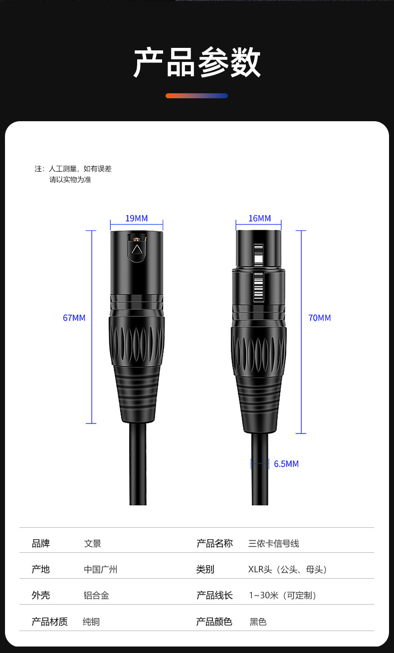 Wenjing línea de control de iluminación de escenario carnong de tres núcleos línea masculina y femenina DMX512 línea blindada línea de señal de iluminación de escenario