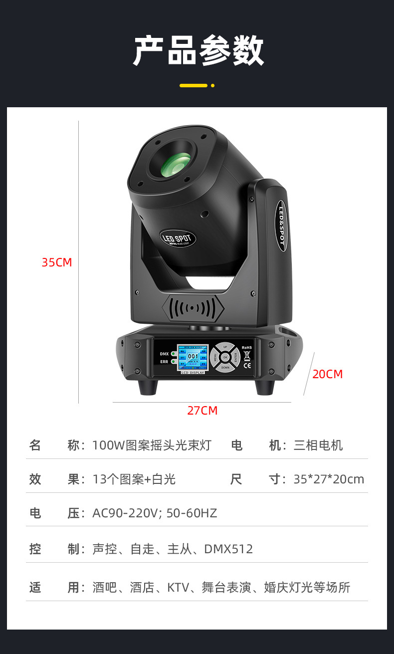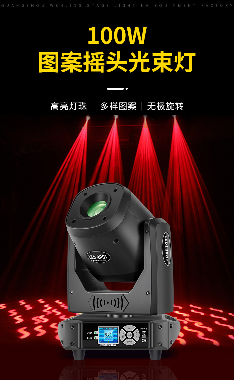 Wenjing Etapa 100W sacudiendo la cabeza de haz de luz LED patrón de haz de luz ambiente de luz salón de banquetes bar Spotlight fabricante