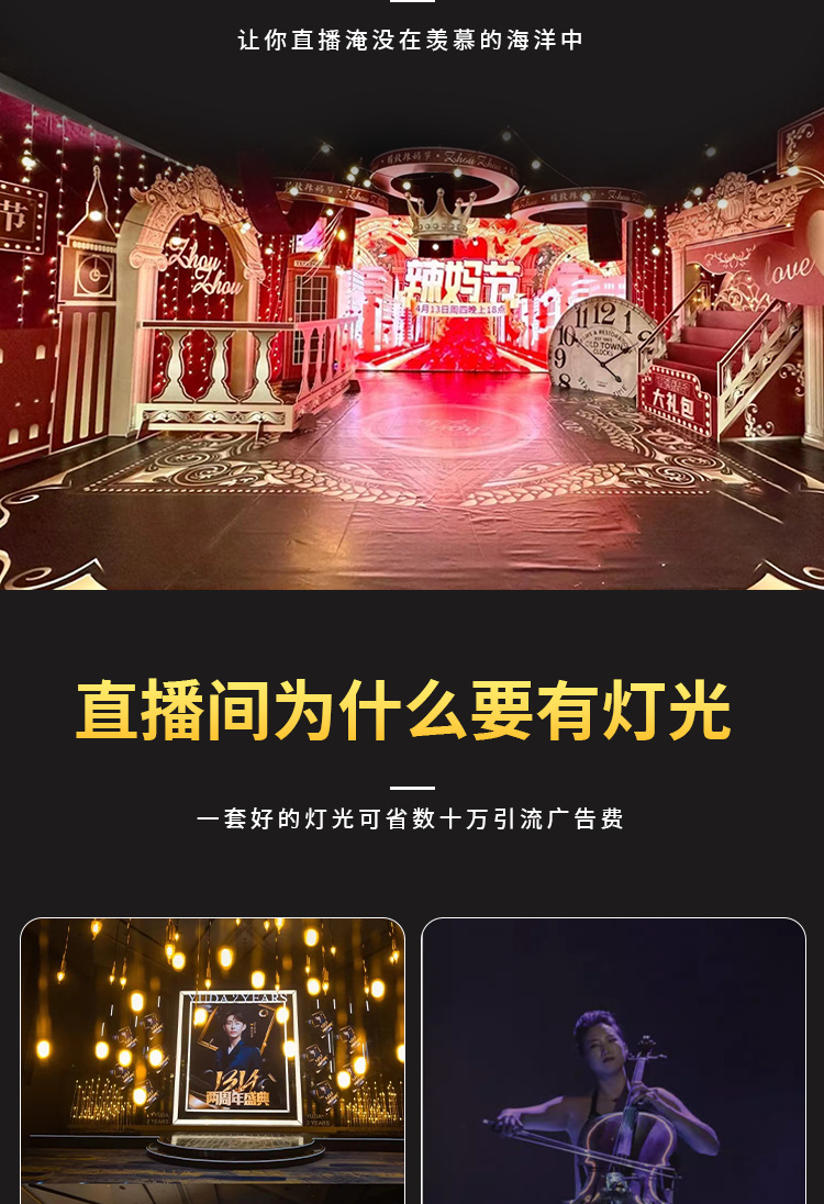 Internet celebridad iluminación de estudio en vivo conjunto completo de equipo llenar luz atmósfera luz depuración puerta a puerta esquema de diseño de iluminación de estudio en vivo