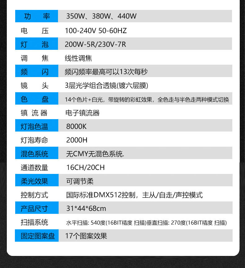 Recorrido al aire libre 380W haz de luz impermeable al aire libre etapa 350W techo Parque escénico punto móvil cabeza luz proyector tiro largo
