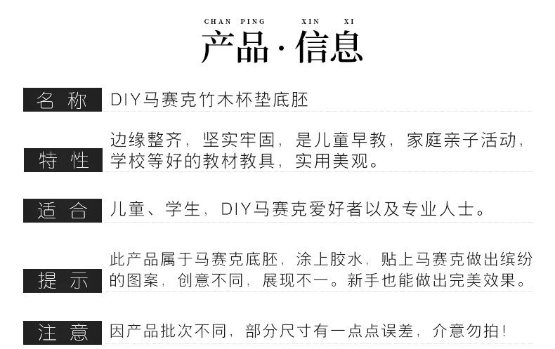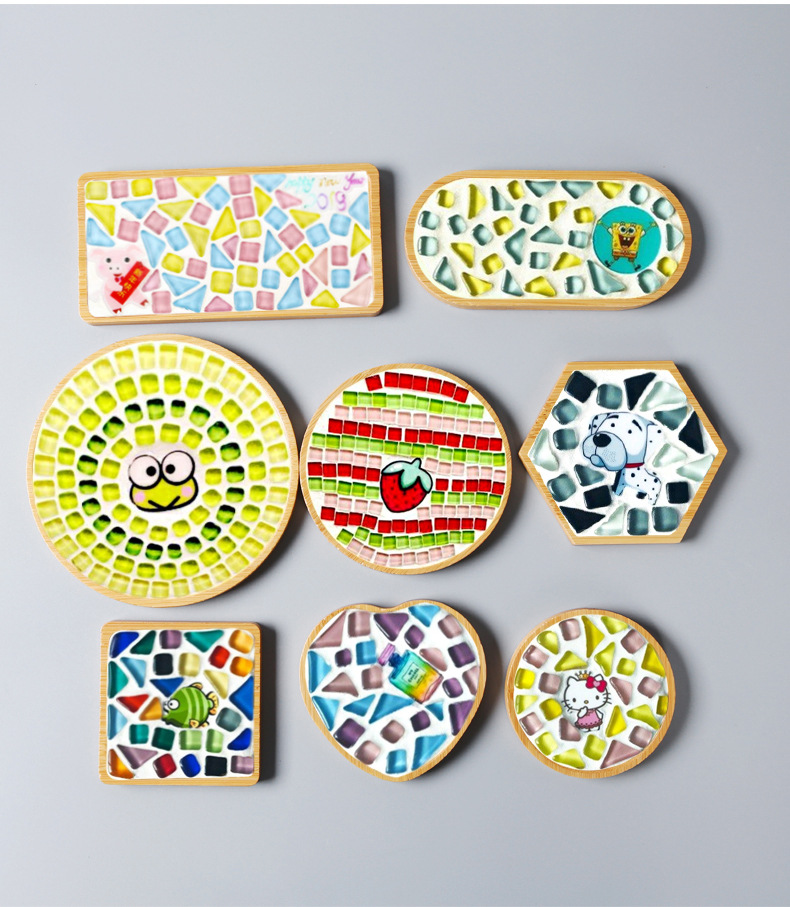 Inventario transfronterizo de bambú y madera taza almohadilla bandeja creativa mosaico DIY base bambú multicarnito bandeja almohadilla aislante térmica