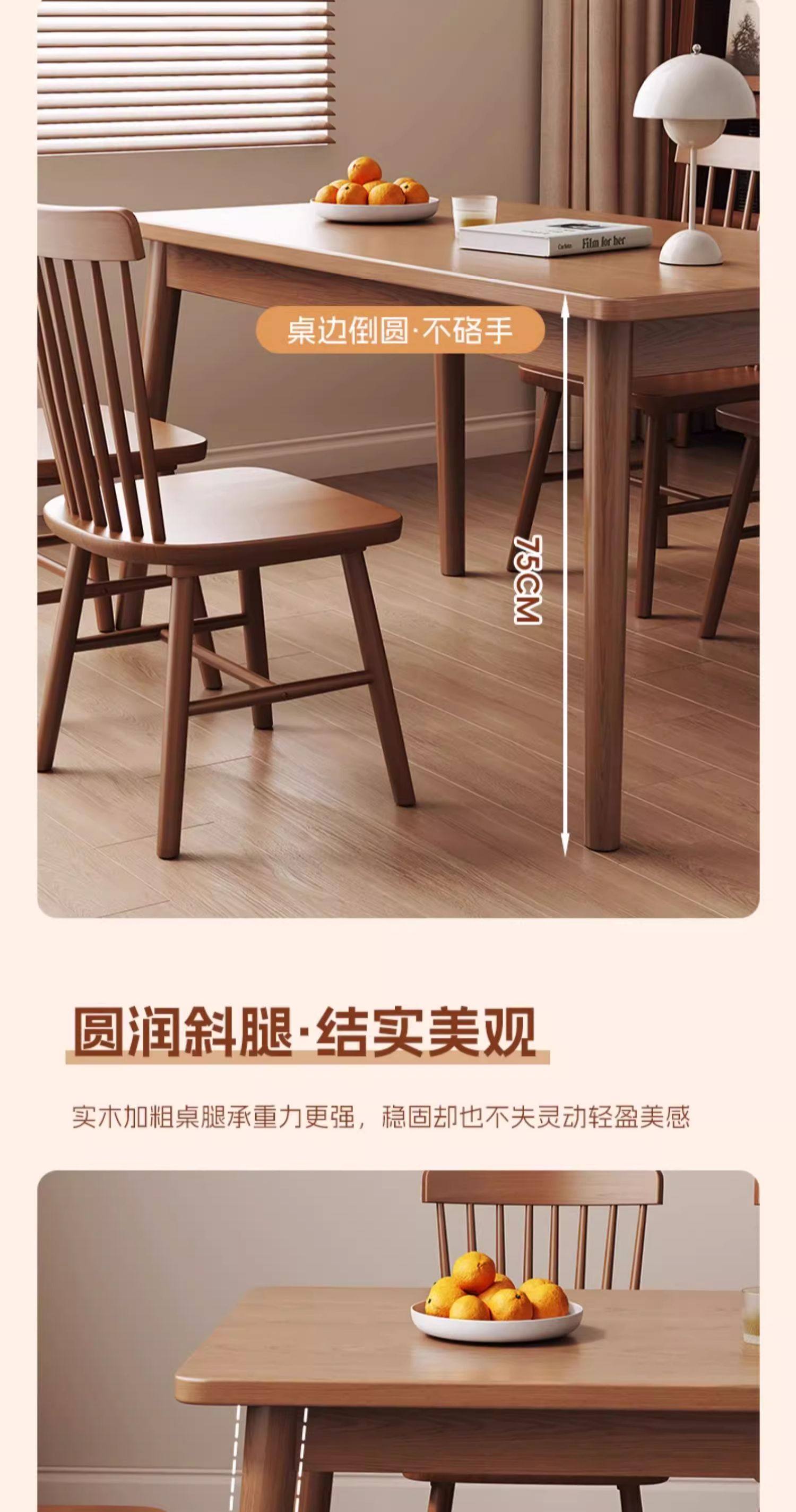 Mesa de comedor de madera sólida, pequeña casa de alquiler simple, mesa de comedor de madera de nuez, silla de mesa de comedor, 2025 nueva casa