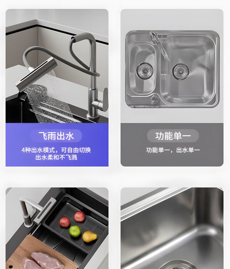 Granos de mijo granos de un solo tanque fregadero 4MM grueso multifuncional lavabo lavavajillas fregadero de cocina de acero inoxidable 304