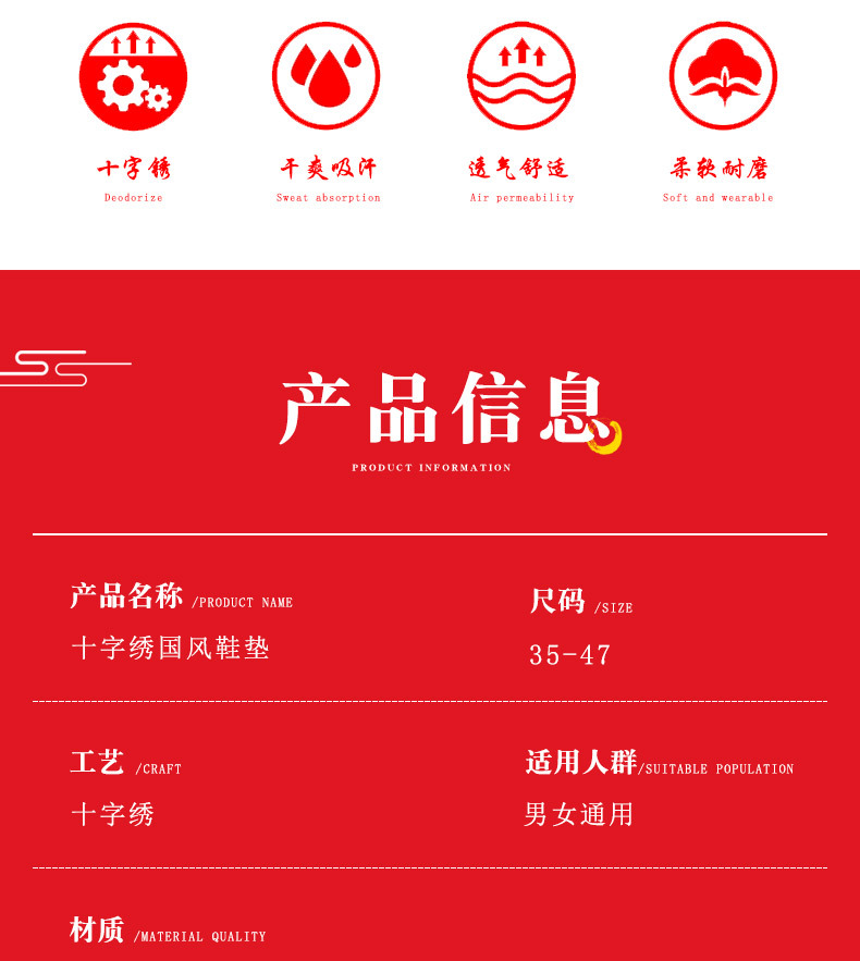 Las plantillas de punto de cruz hechas a mano son antiolor, absorbentes del sudor, transpirables y cómodas. Las plantillas Zodiac son novedosas para el año de nacimiento y no requieren bordado propio.