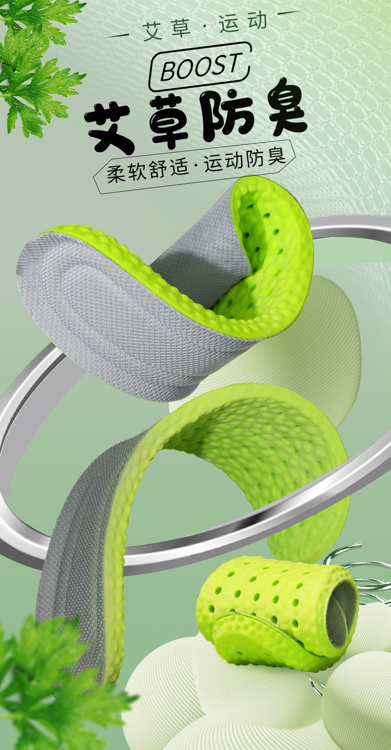 Boost super suave pisando heces, aumentando la sensación, desodorante, absorbente de sudor, plantilla deportiva para hombres, transpirable y amortiguadora, plantilla de ajenjo