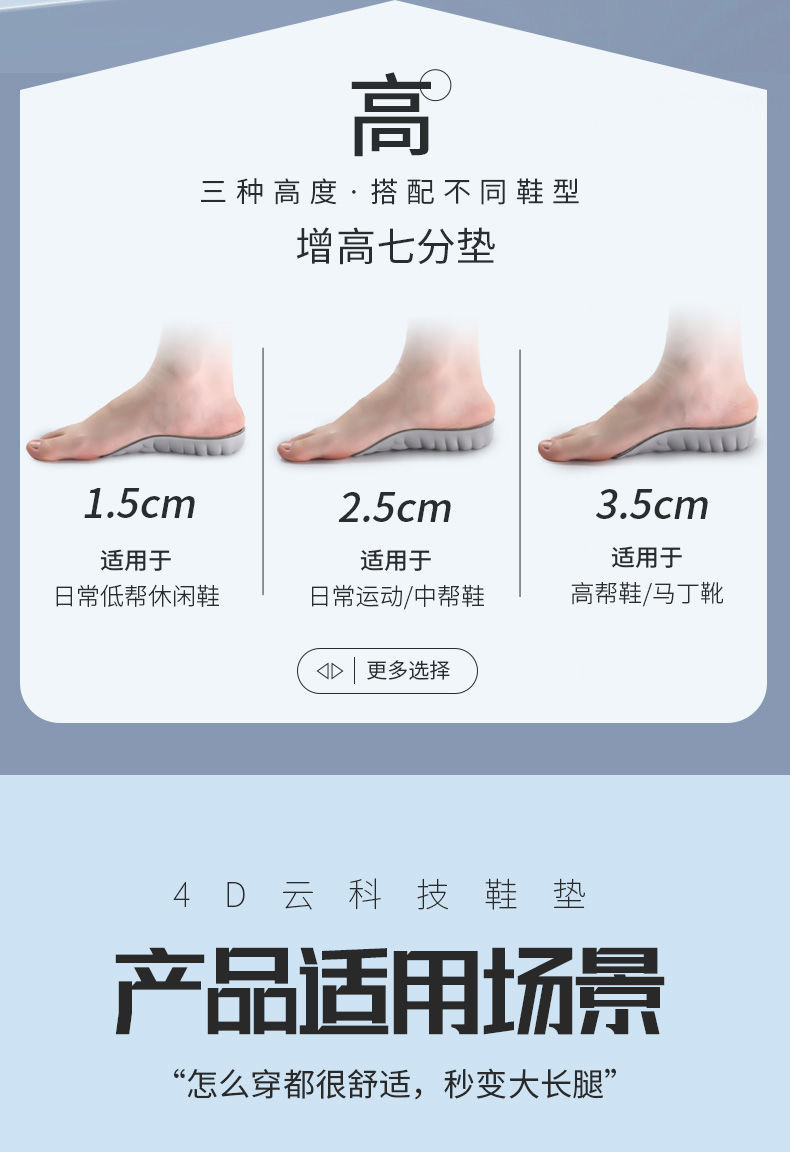 Plantilla de aumento de altura interior media almohadilla eva transpirable y cómoda almohadilla de aumento invisible absorción de impactos del talón se puede cortar y distribuir al por mayor