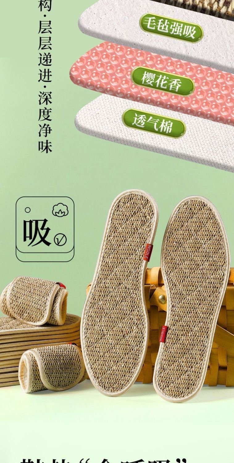 Plantilla desodorante de algodón y lino de ajenjo para hombres y mujeres, suela suave, transpirable, desodorante, fragancia, pies sudorosos, plantillas de verano
