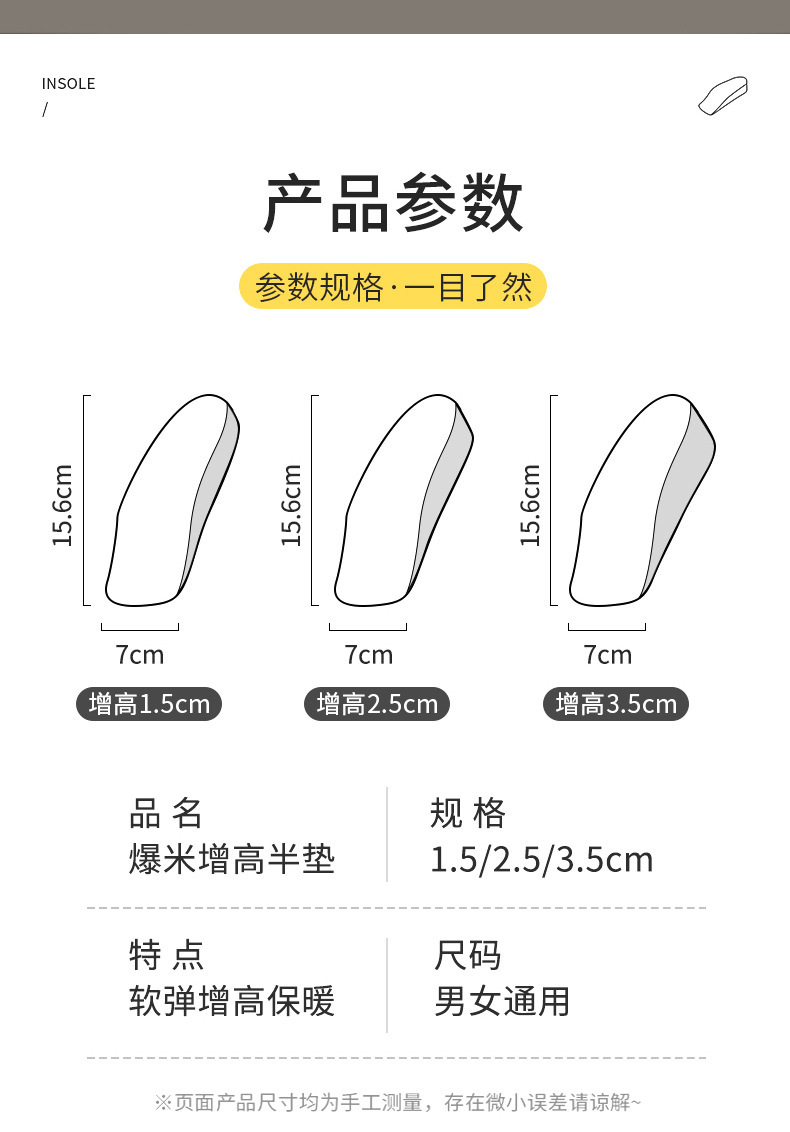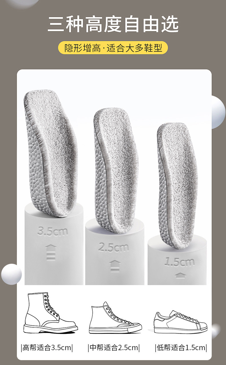 Media talla invisibles insoleadas de altura interior botas Martin para hombres y mujeres engrosadas plantillas de masaje plantillas de tacones