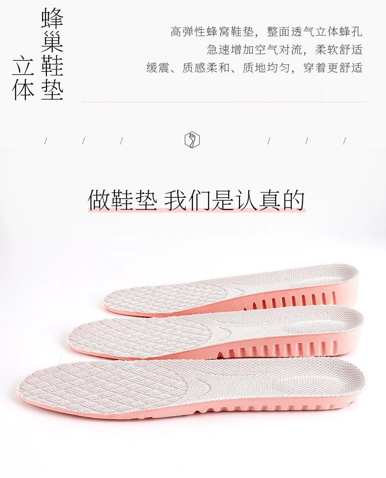 Plantillas para aumentar la altura con diseño de panal para mujer, cómodas y que no cansan, botas invisibles con suela blanda, absorbentes del sudor, sin olores, transpirables, totalmente acolchadas, amortiguadoras para deportes.
