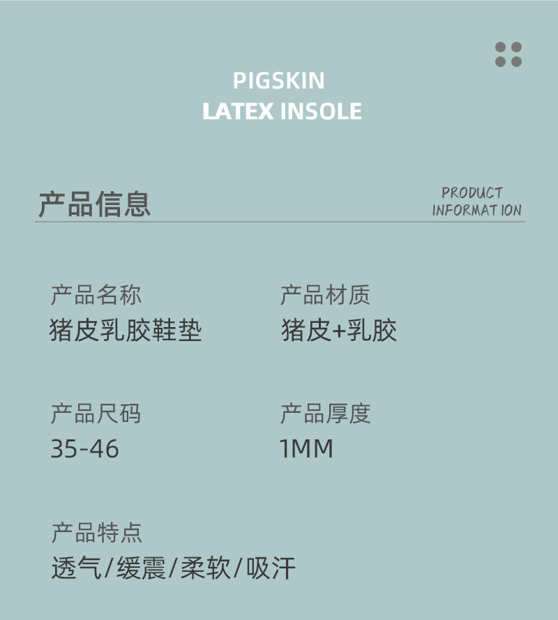 | Color | Almohadilla de cuero de cerdo 35/36,Almohadilla de cuero de cerdo 37/38,Almohadilla de cuero de cerdo 39/40,Almohadilla de cuero de cerdo 41/42,Almohadilla de cuero de cerdo 43/44,Almohadilla de cuero de cerdo 45/46 |