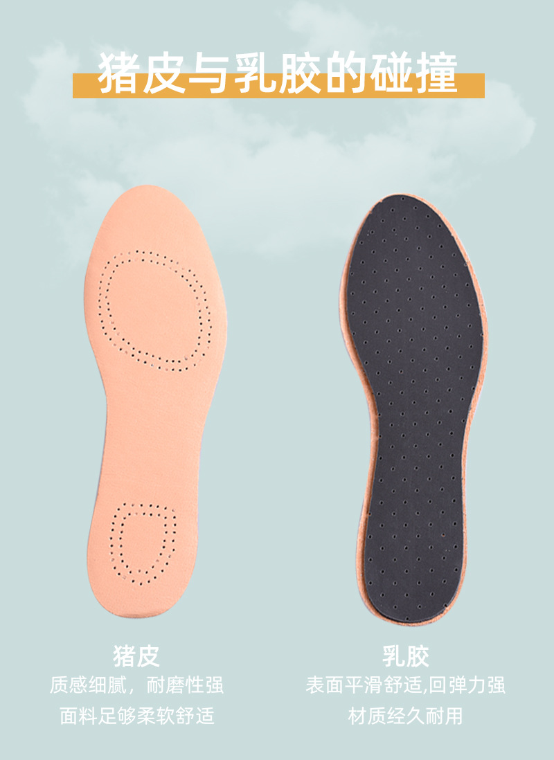 En stock suministro de cuero genuino deportes pad piel de cerdo capa superior pad desodorante absorción del sudor cómodo ultra-Delgado Plantilla de corrección plantilla