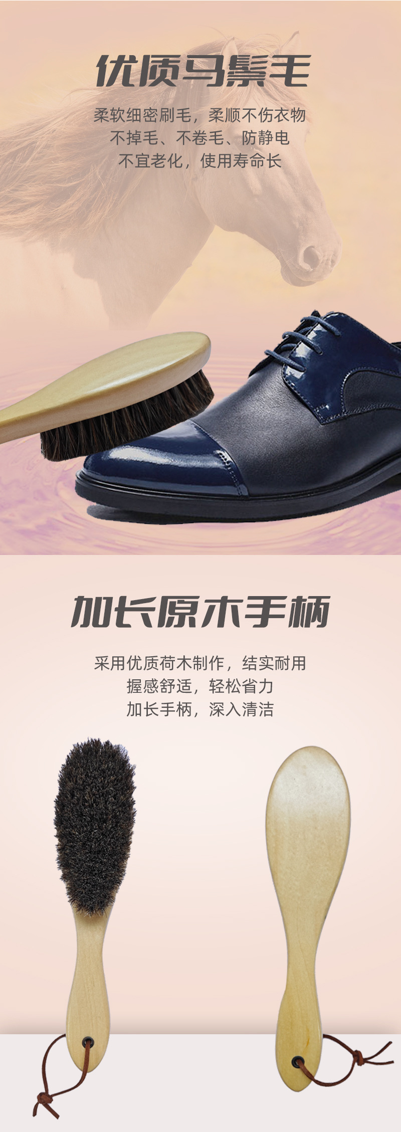 Cepillo de pelo de caballo de registro directo de fábrica cepillo de zapatos de madera maciza cepillo de polvo de limpieza pulido doméstico puede hacer entrega de una pieza de marca registrada