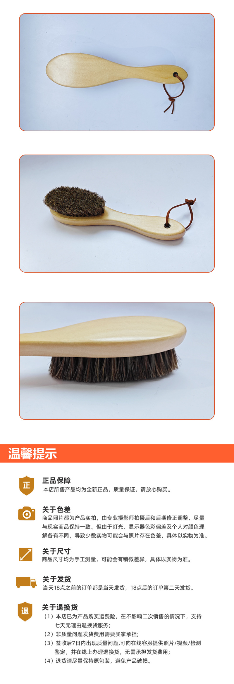 | Color | Cepillo de pelo de caballo con mango de color madera de 23CM 82,6g |