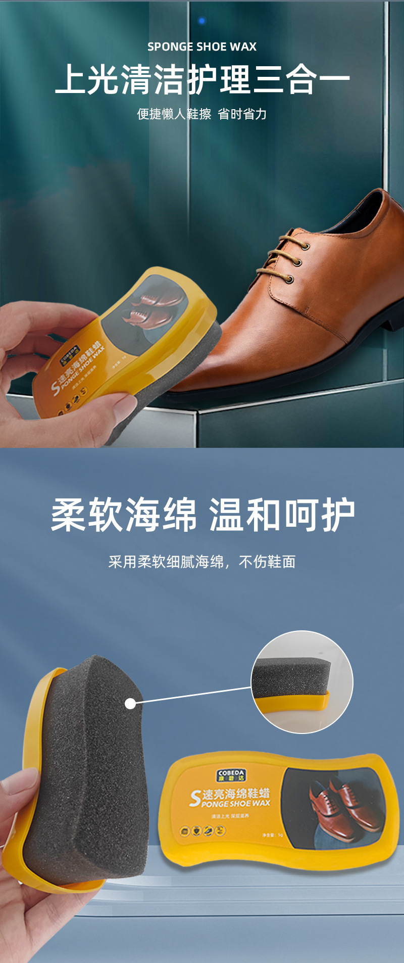 Es decir, pulido de zapatos esponja brillante, cera de cuidado de descontaminación de cuero multifuncional, pulido de zapatos incoloro, es decir, brillante sin limpiar