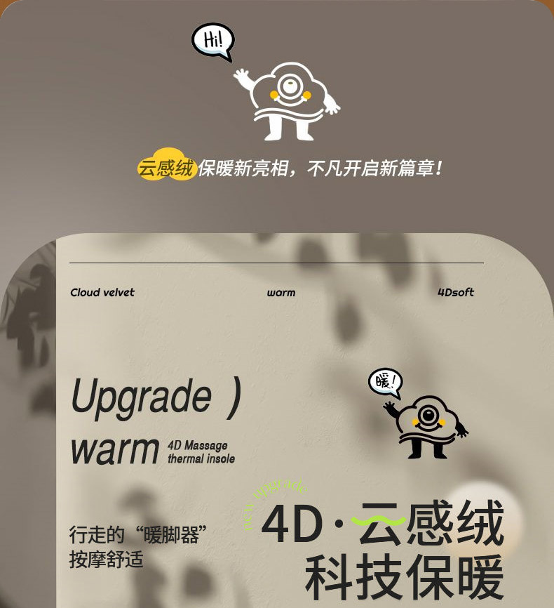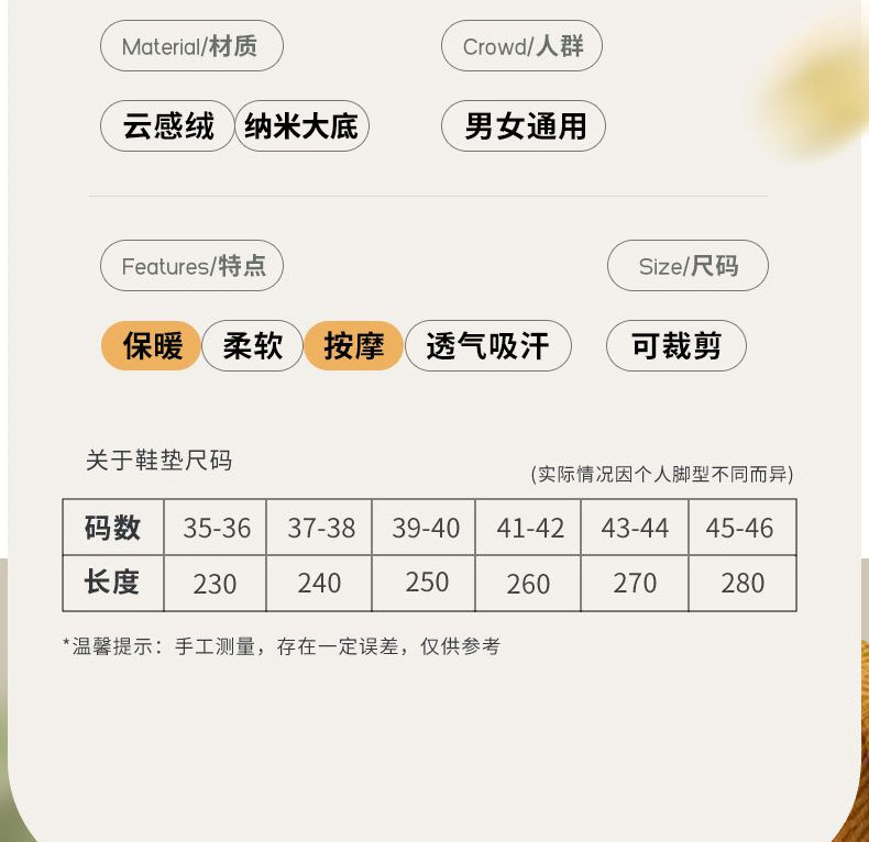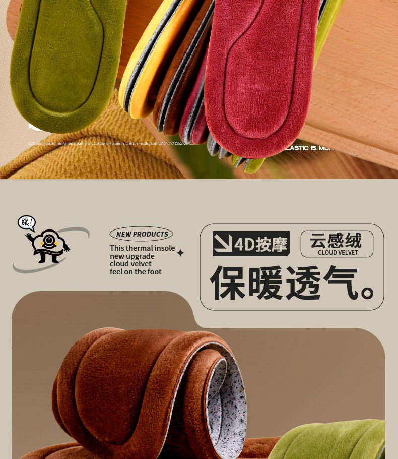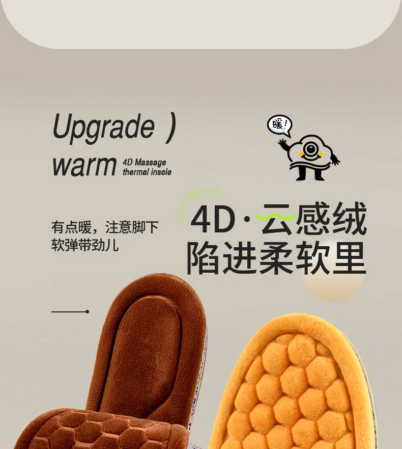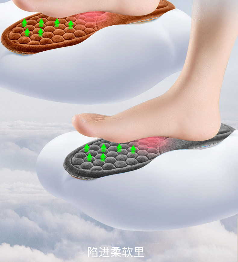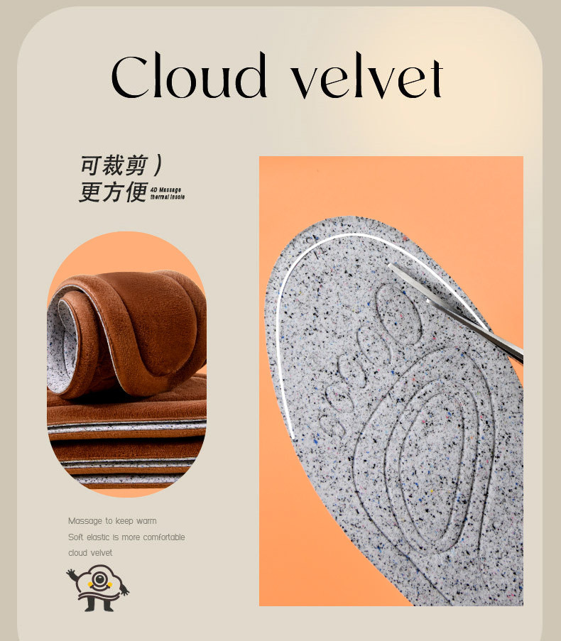 Huellas de pie de alta calidad de la mitad de cintura para hombres y mujeres con camelón grueso transpirable, absorción de sudor y desodorante, plantilla de algodón caliente a prueba de frío.