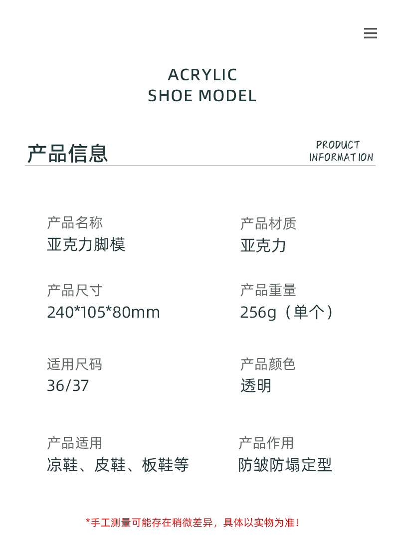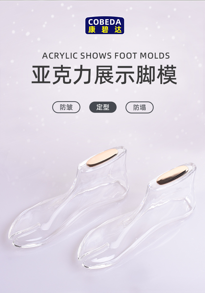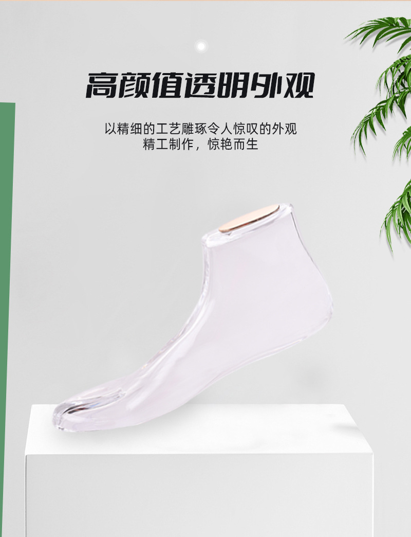 Molde de pie de acrílico al por mayor de fábrica 37 tamaño molde de pie plano molde de zapato transparente soporte de zapato sandalias soporte zapato último molde de zapato de cristal