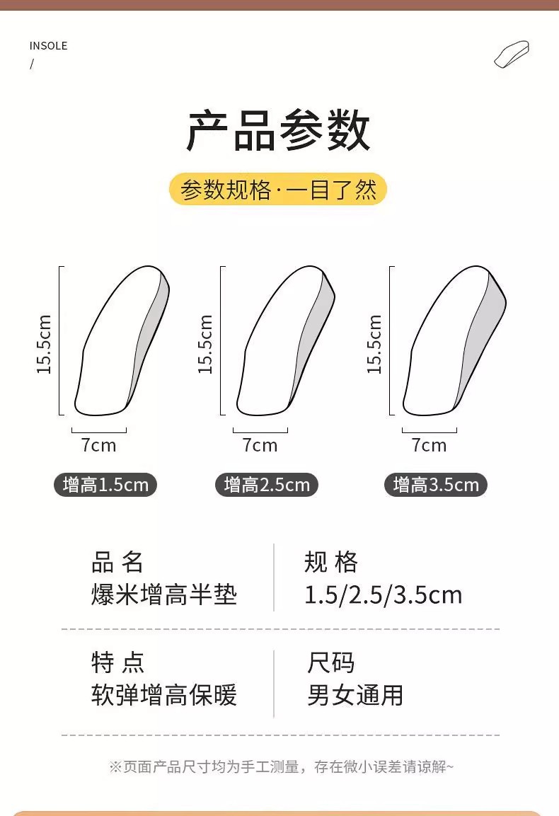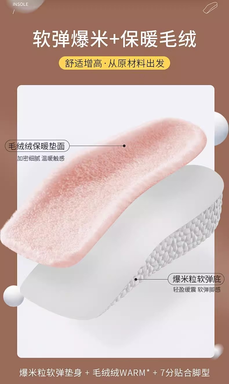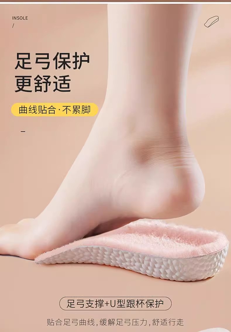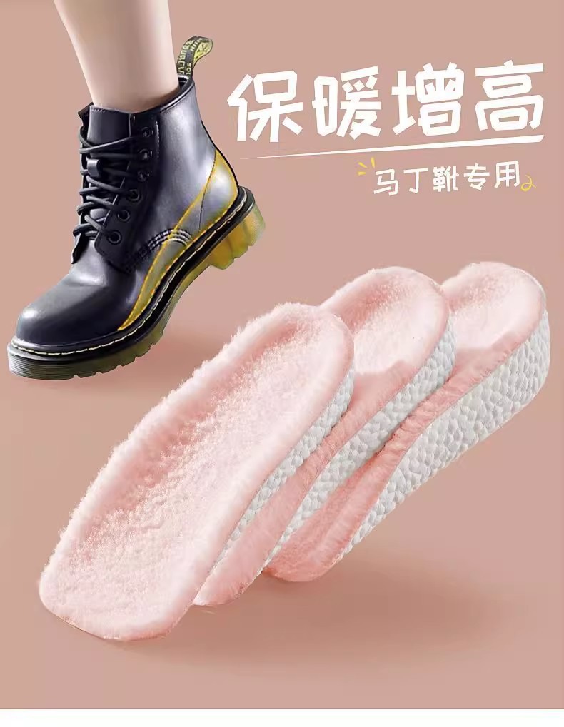 7 puntos para aumentar la altura de la plantilla de calentamiento de lana y arco invisible medio almohadilla para engrosar las botas de Martin zapatillas no cansar los pies invierno