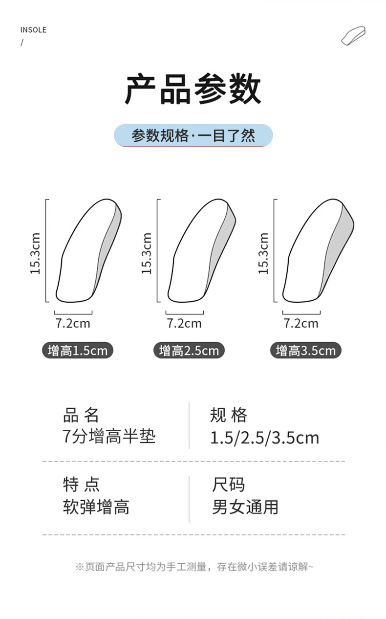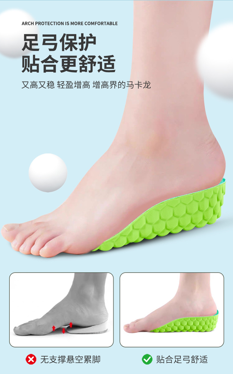 Masaje para hombres y mujeres invisibles media almohadilla de soporte de arco no se cansa durante mucho tiempo para respirar dentro de siete puntos de aumento de la plantilla