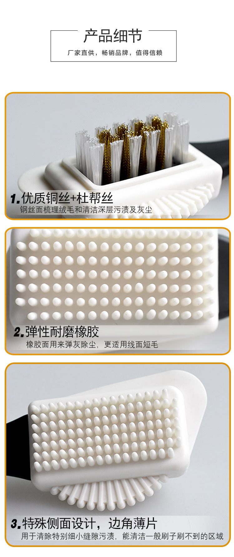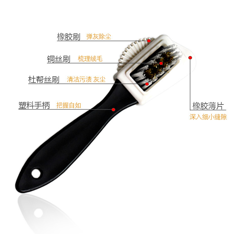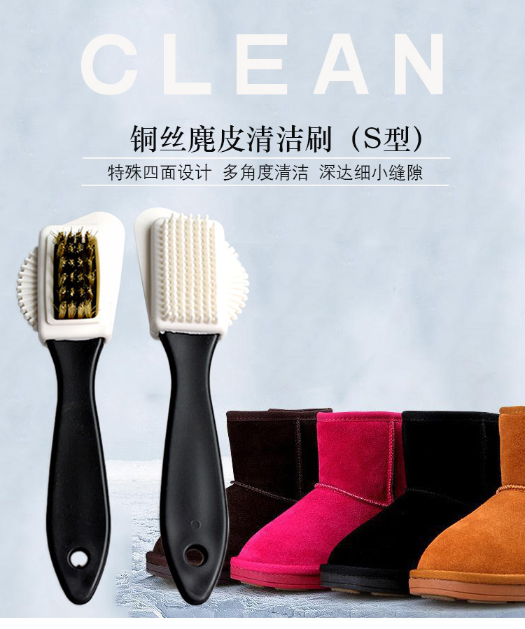 Precio de fábrica kangbida S-tipo de gamuza cepillo de limpieza de doble cara cepillo de zapatos limpieza descontaminación cepillo de gamuza cuidado profesional cepillo de zapatos
