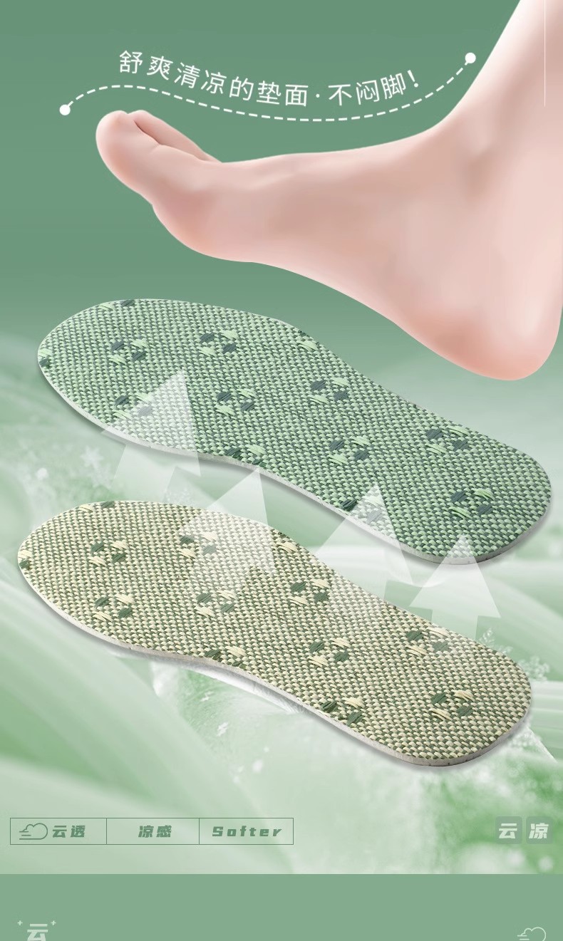 Footprint de verano pulpa de madera de hierba transpirable antiperspirante antiperspirante antiperspirante antiolor pies descalzos de látex fresco
