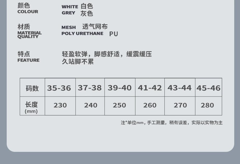 | Colores | PU extra suave pisando mierda 4D sentido de la nube-blanco,PU extra suave pisando mierda 4D sentido de la nube-negro,PU extra suave pisando mierda 4D sensación de nube-cara gris,PU extra suave pisando mierda 4D sentido de nube-fondo verde superficie gris,PU material suave masaje de pies-naranja,PU material suave masaje de pies-blanco,PU material suave masaje de pies-negro,PU material suave masaje de pies-gris,PU material suave masaje de pies-superficie gris fondo verde,Almohadilla antiolor de material suave PU-Blanco |