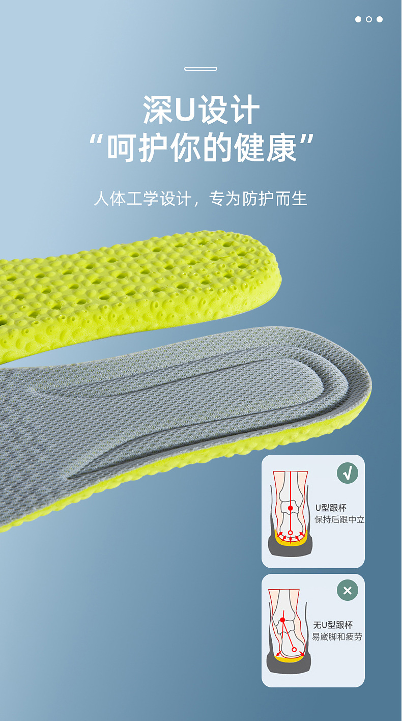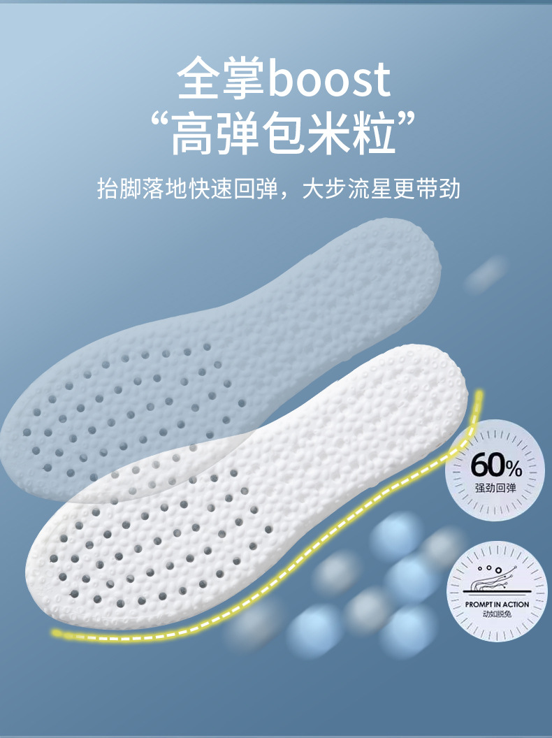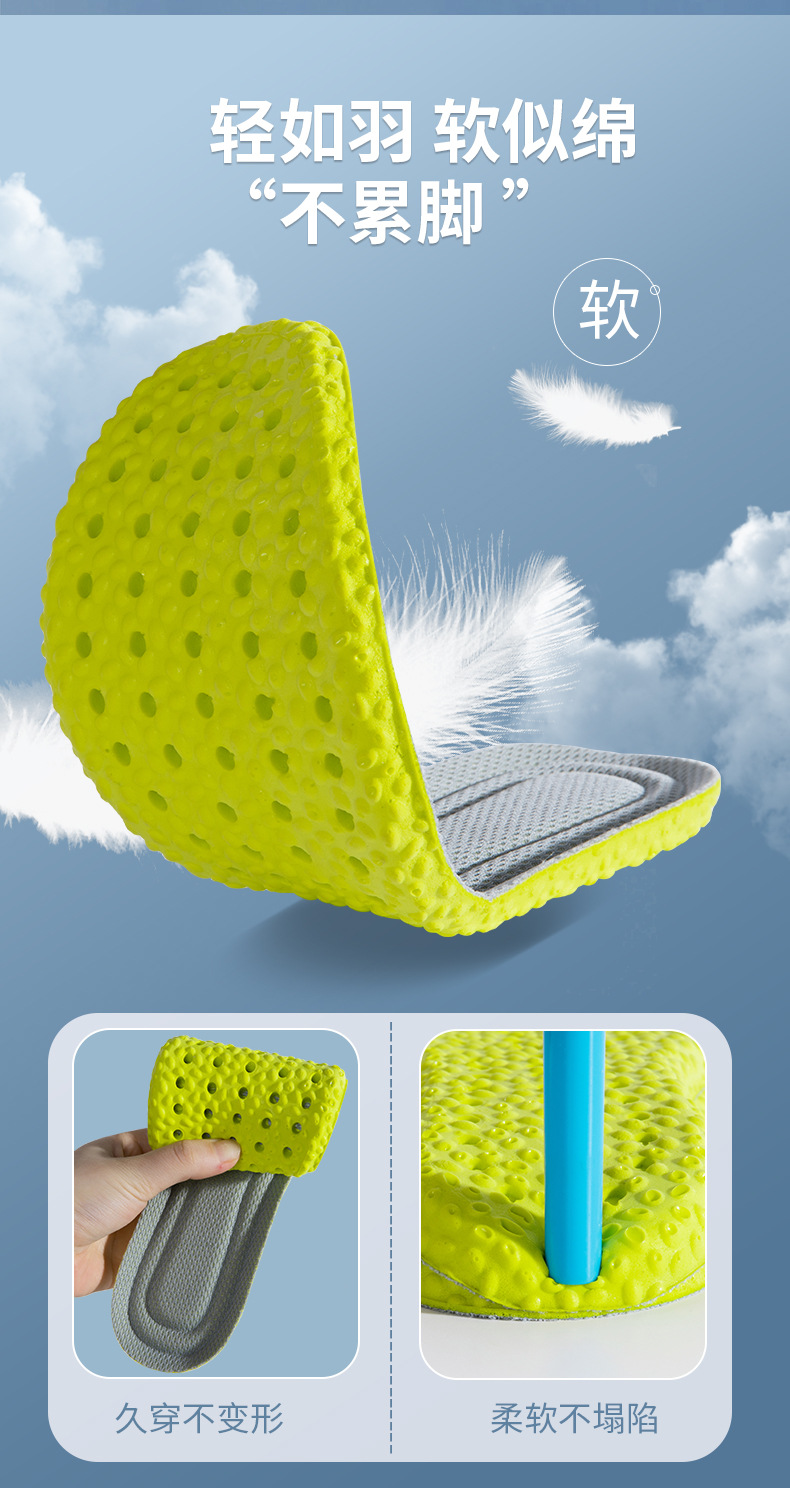 Huella de pie de alta calidad, una pieza de PU pie de mierda sensación insolelas de zapatos para hombres y mujeres de comercio electrónico ultra suave deportes corriendo amortiguamiento de choque alto