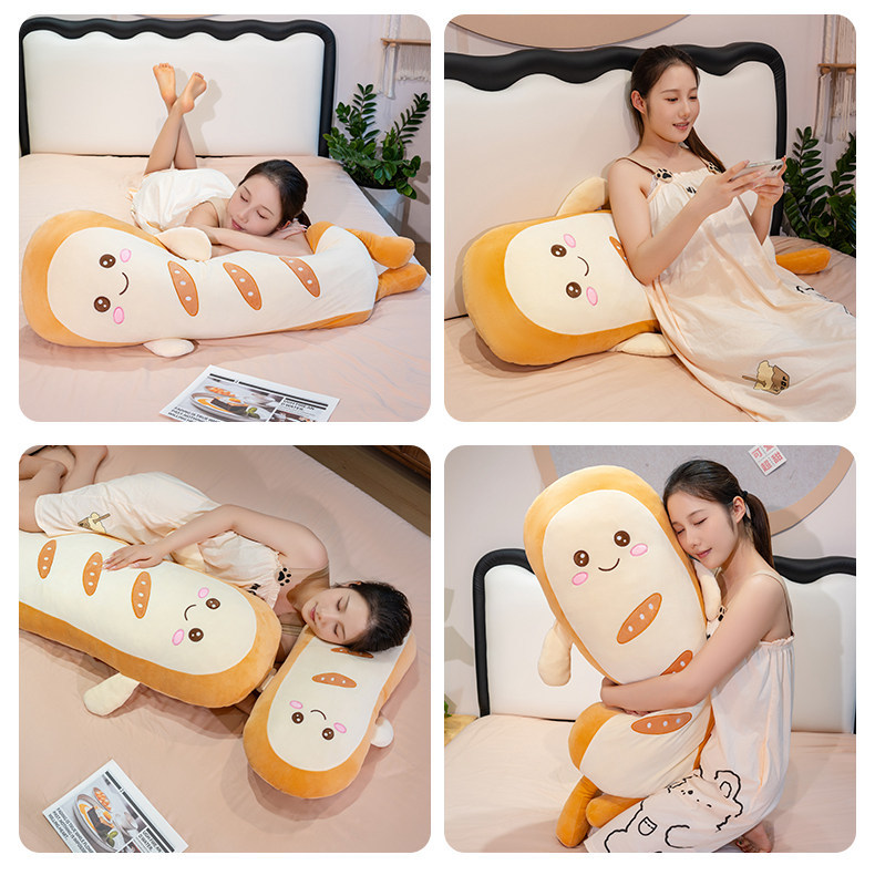 almohada de pan suave de dibujos animados para dormir niñas piernas de cama almohada larga almohada de cabecera dormitorio de estudiantes tostadas
