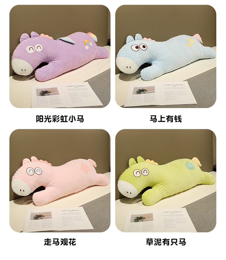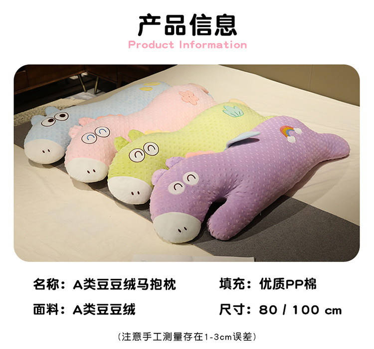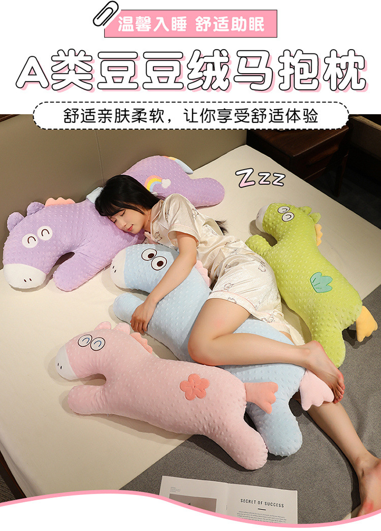 Verano lindos cojines de peluche de dibujos animados frijoles de peluche caballo almohada larga niñas piernas para dormir en la cama al por mayor lindo