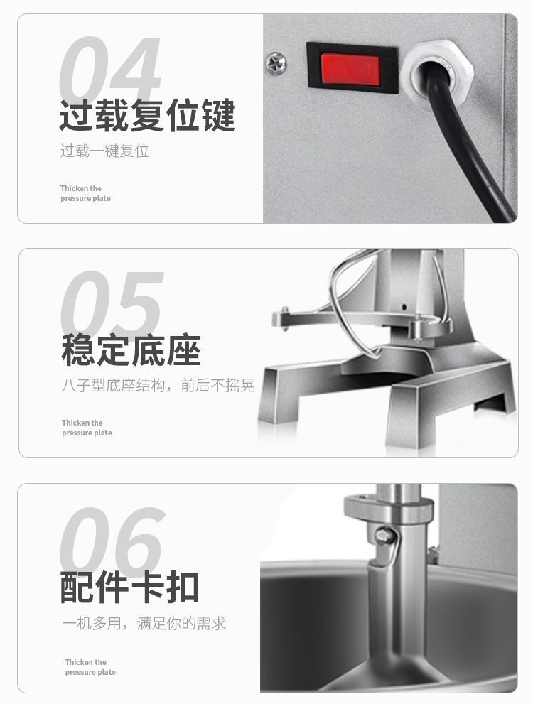| Especificaciones | Mezcladora de tres funciones 10l, mezcladora de huevos comerciales 15l y máquina de fideos, mezcladora de huevos comerciales 20L y máquina de fideos, mezcladora de huevos comerciales 30l y máquina de fideos, mezcladora de huevos comerciales 20L y máquina de fideos [modelo de cubierta protectora], mezcladora de huevos comerciales 30l y máquina de fideos [modelo de cubierta protectora], mezcladora de huevos comerciales 20L y máquina de fideos fuertes |