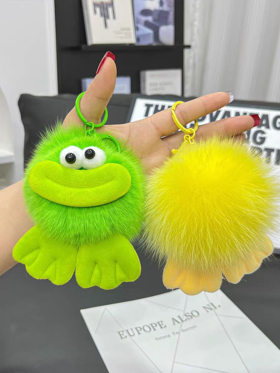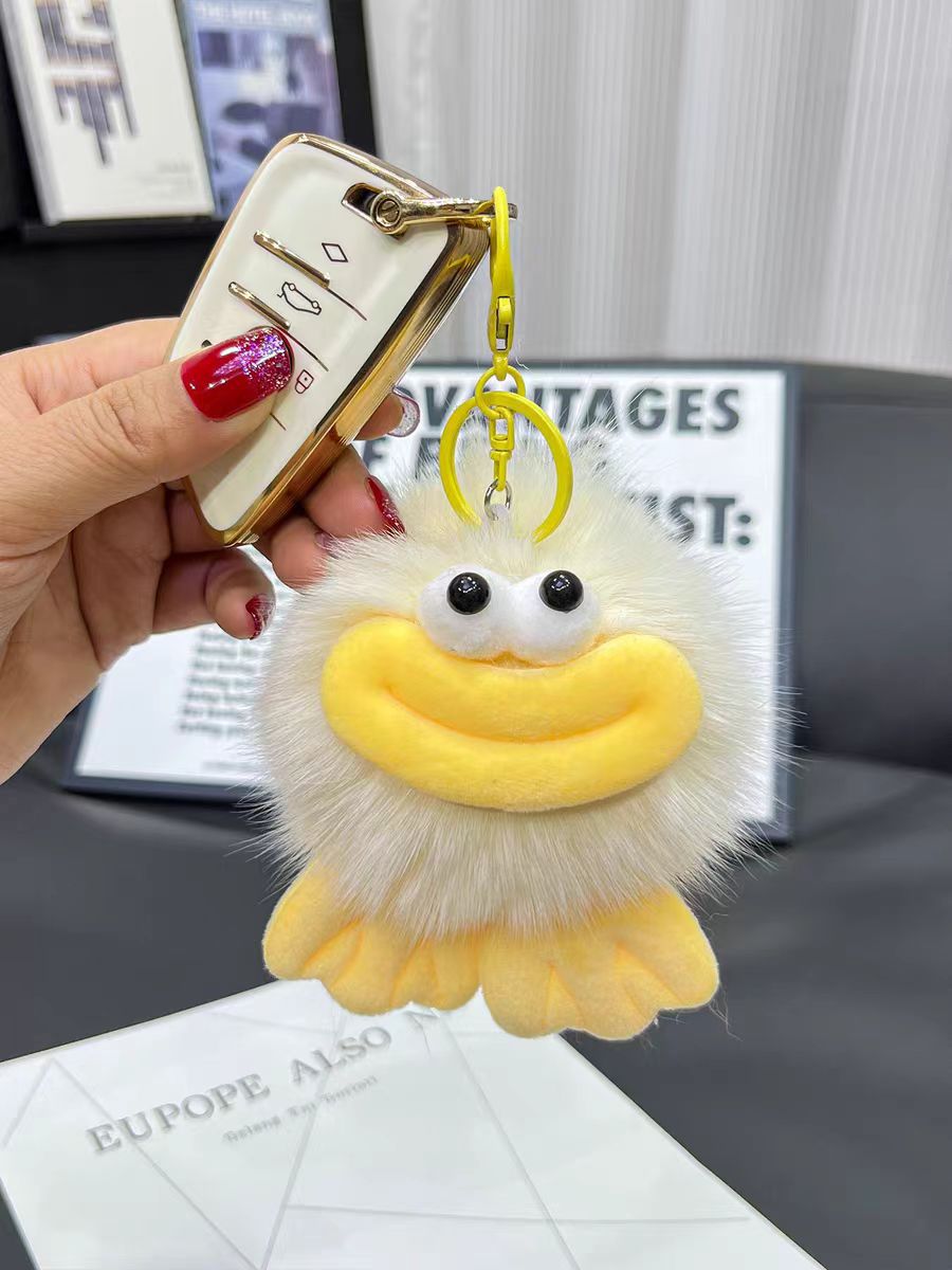 Cute zorro pelo pato boca de carbón bola de llavero de automóvil colgante en elf pelusa mochila colgante