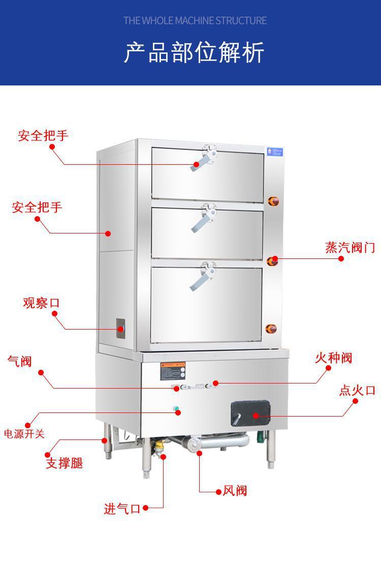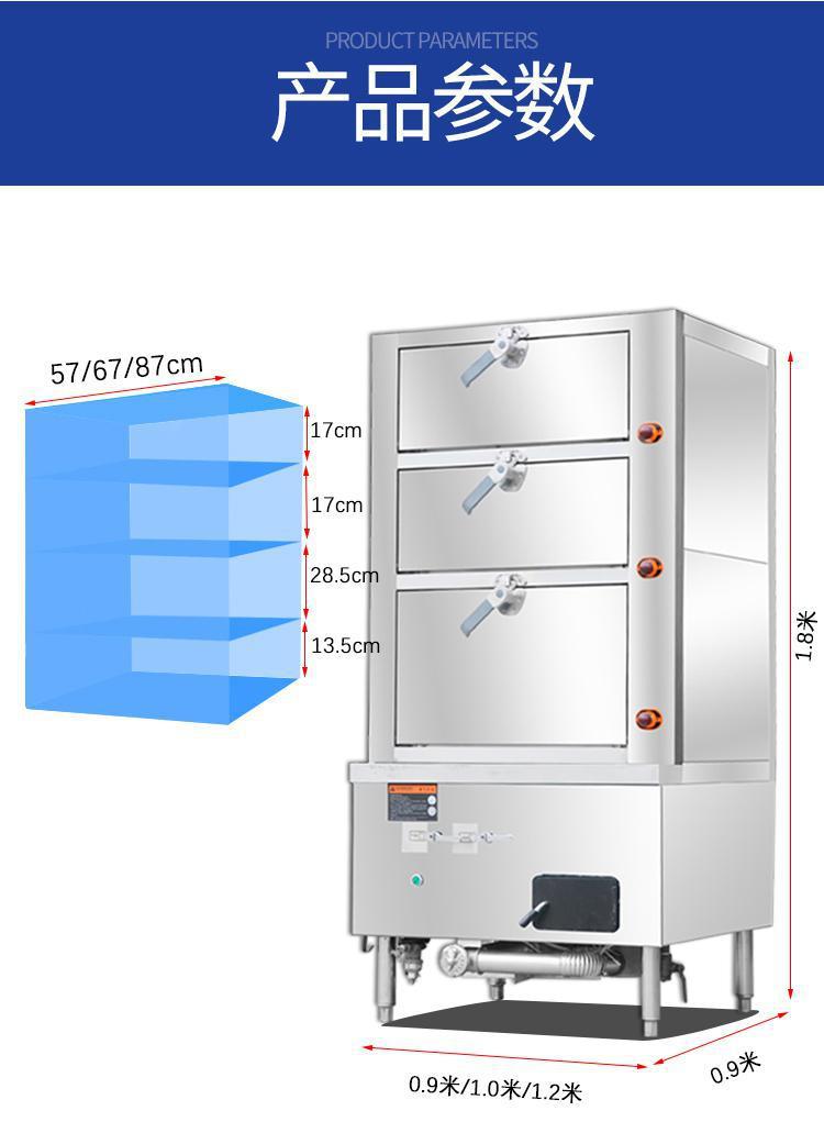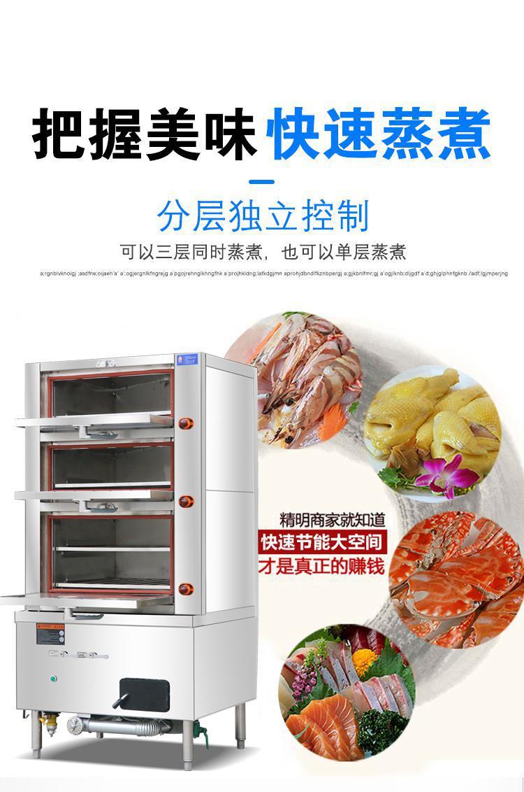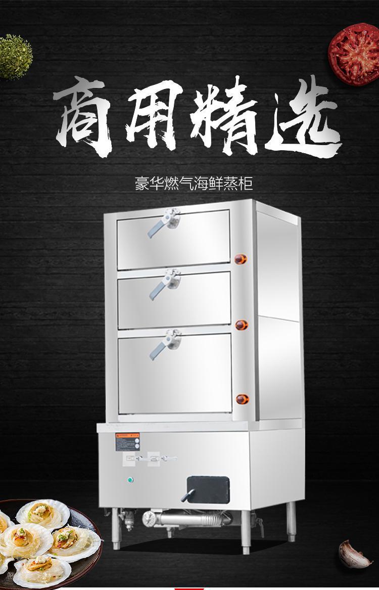 Cabinet de vapor de mariscos, hotel comercial, cabinet de vapor de mariscos de acero inoxidable de calefacción eléctrica automática, cabinet de vapor de mariscos de gas de tres puertas