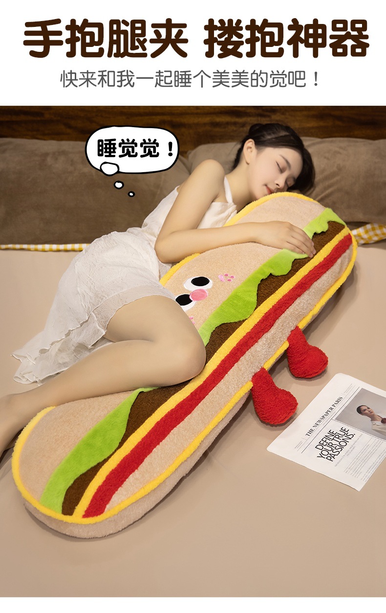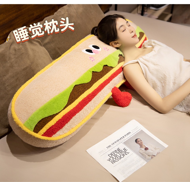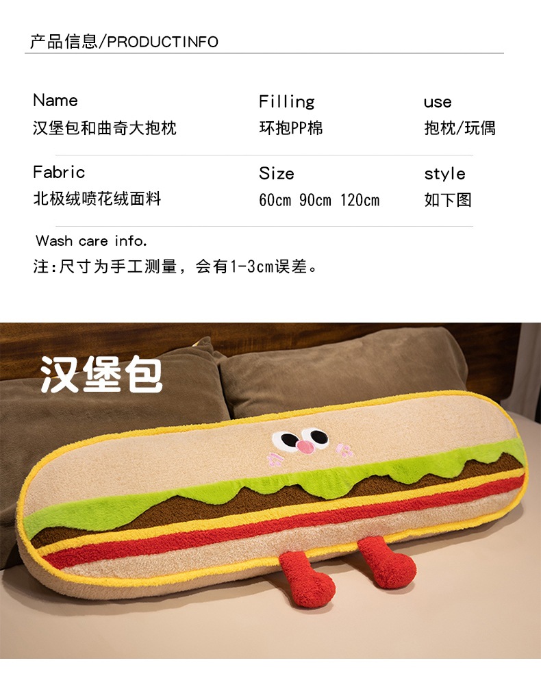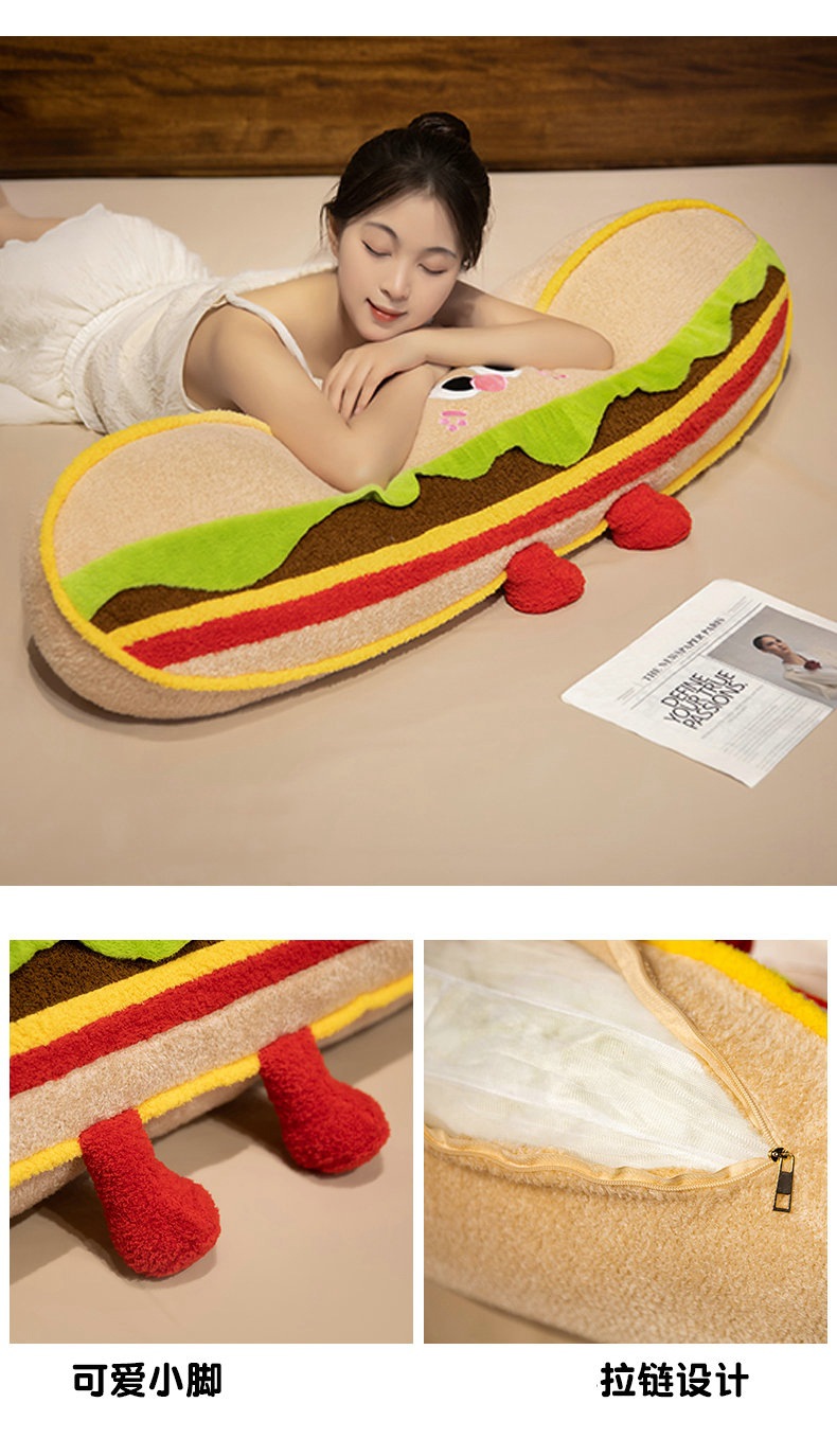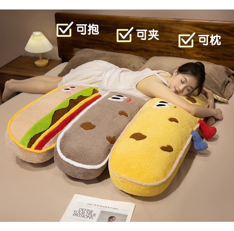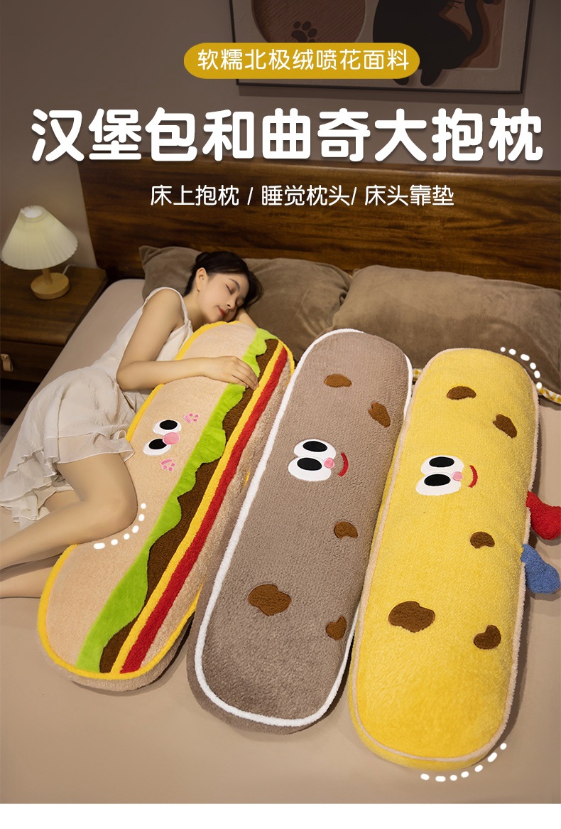 Hamburguesas de dibujos animados galletas almohada de tira larga almohada de cama dormir lateral almohada de pierna almohada desmontable almohada de cabecera almohada