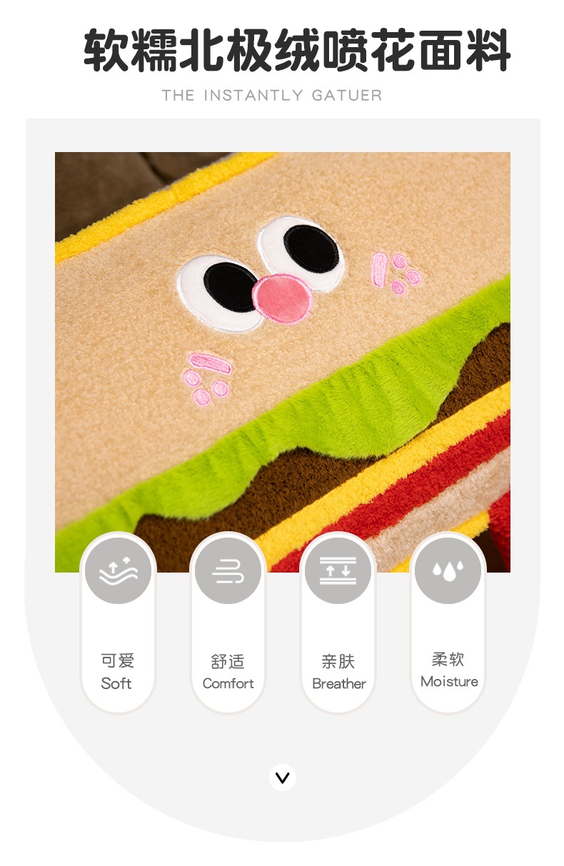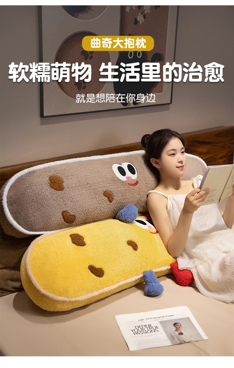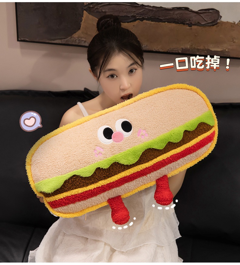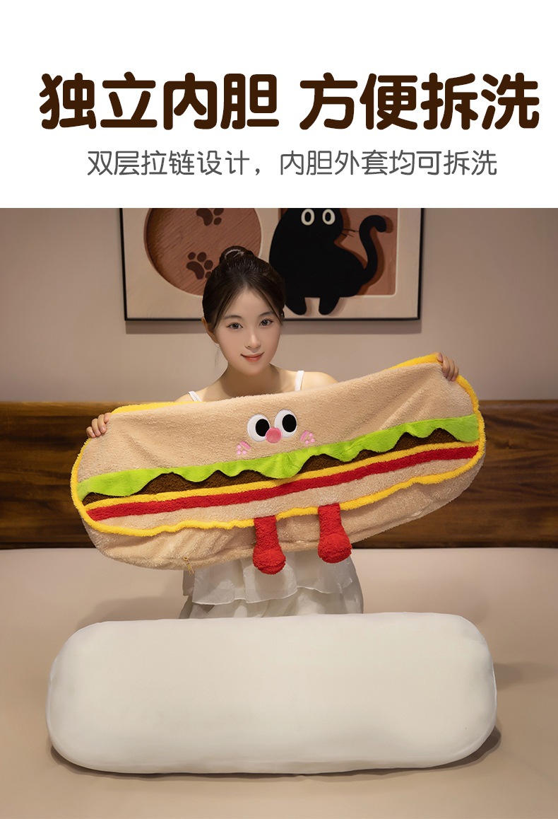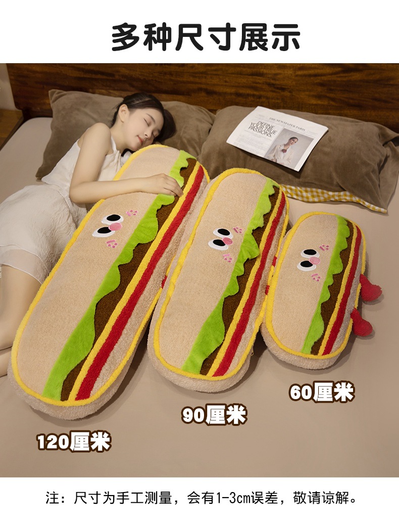 Hamburguesas de dibujos animados galletas almohada de tira larga almohada de cama dormir lateral almohada de pierna almohada desmontable almohada de cabecera almohada