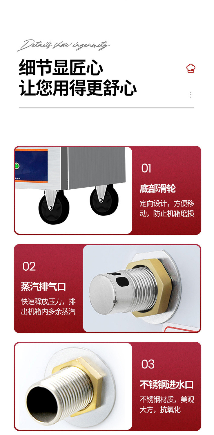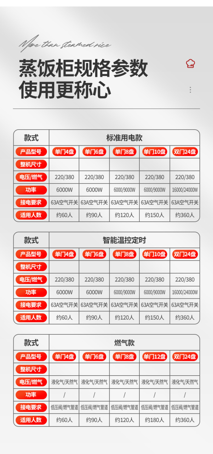| Especificaciones | 220伏两相电电加热标准款款(新手不推荐)-家用款【小6盘】变频节能/360度蒸汽环绕,220伏两相电电加热标准款款(新手不推荐)-商用款【大4盘】变频节能/360蒸汽环绕,220伏两相电电加热标准款款(新手不推荐)-商用款【大6盘】变频节能/360蒸汽环绕,220伏两相电电加热标准款款(新手不推荐)-商用款【大8盘】变频节能/360度蒸汽环绕,220伏两相电电加热标准款款(新手不推荐)-商用款【大10盘】变频节能/360度蒸汽环绕,220伏两相电电加热标准款款(新手不推荐)-商用款【大12盘】变频节能/360度蒸汽环绕,220伏两相电电加热标准款款(新手不推荐)-大4盘【16安大号插头式】变频节能/360度蒸汽环绕,220伏两相电电加热标准款款(新手不推荐)-大6盘【16安大号插头式】变频节能/360度蒸汽环绕,220伏两相电电加热标准款款(新手不推荐)-家用小4盘【不赠送托盘】,220伏两相电智能定时温控款(推荐产品)-家用款【小6盘】变频节能/360度蒸汽环绕,220伏两相电智能定时温控款(推荐产品)-商用款【大4盘】变频节能/360蒸汽环绕,220伏两相电智能定时温控款(推荐产品)-商用款【大6盘】变频节能/360蒸汽环绕,220伏两相电智能定时温控款(推荐产品)-商用款【大8盘】变频节能/360度蒸汽环绕,220伏两相电智能定时温控款(推荐产品)-商用款【大10盘】变频节能/360度蒸汽环绕,220伏两相电智能定时温控款(推荐产品)-商用款【大12盘】变频节能/360度蒸汽环绕,220伏两相电智能定时温控款(推荐产品)-大4盘【16安大号插头式】变频节能/360度蒸汽环绕,220伏两相电智能定时温控款(推荐产品)-大6盘【16安大号插头式】变频节能/360度蒸汽环绕,220伏两相电智能定时温控款(推荐产品)-家用小4盘【不赠送托盘】,380伏三相电电加热标准款(新手不推荐)-商用款【大4盘】变频节能/360蒸汽环绕,380伏三相电电加热标准款(新手不推荐)-商用款【大6盘】变频节能/360蒸汽环绕,380伏三相电电加热标准款(新手不推荐)-商用款【大8盘】变频节能/360度蒸汽环绕,380伏三相电电加热标准款(新手不推荐)-商用款【大10盘】变频节能/360度蒸汽环绕,380伏三相电电加热标准款(新手不推荐)-商用款【大12盘】变频节能/360度蒸汽环绕,380伏三相电智能定时温控款(推荐产品)-商用款【大4盘】变频节能/360蒸汽环绕,380伏三相电智能定时温控款(推荐产品)-商用款【大6盘】变频节能/360蒸汽环绕,380伏三相电智能定时温控款(推荐产品)-商用款【大8盘】变频节能/360度蒸汽环绕,380伏三相电智能定时温控款(推荐产品)-商用款【大10盘】变频节能/360度蒸汽环绕,380伏三相电智能定时温控款(推荐产品)-商用款【大12盘】变频节能/360度蒸汽环绕,220伏两相电防干烧+定时定温款(推荐产品)-商用款【大4盘】变频节能/360蒸汽环绕,220伏两相电防干烧+定时定温款(推荐产品)-商用款【大6盘】变频节能/360蒸汽环绕,220伏两相电防干烧+定时定温款(推荐产品)-商用款【大8盘】变频节能/360度蒸汽环绕,220伏两相电防干烧+定时定温款(推荐产品)-商用款【大10盘】变频节能/360度蒸汽环绕,220伏两相电防干烧+定时定温款(推荐产品)-商用款【大12盘】变频节能/360度蒸汽环绕,220伏两相电防干烧+定时定温款(推荐产品)-大4盘【16安大号插头式】变频节能/360度蒸汽环绕,220伏两相电防干烧+定时定温款(推荐产品)-大6盘【16安大号插头式】变频节能/360度蒸汽环绕,380伏三相电防干烧+定时控温款(推荐产品)-商用款【大4盘】变频节能/360蒸汽环绕,380伏三相电防干烧+定时控温款(推荐产品)-商用款【大6盘】变频节能/360蒸汽环绕,380伏三相电防干烧+定时控温款(推荐产品)-商用款【大8盘】变频节能/360度蒸汽环绕,380伏三相电防干烧+定时控温款(推荐产品)-商用款【大10盘】变频节能/360度蒸汽环绕,380伏三相电防干烧+定时控温款(推荐产品)-商用款【大12盘】变频节能/360度蒸汽环绕,煤 气 款*(就是节能高效就是安全)-商用款【大4盘】变频节能/360蒸汽环绕,煤 气 款*(就是节能高效就是安全)-商用款【大6盘】变频节能/360蒸汽环绕,煤 气 款*(就是节能高效就是安全)-商用款【大8盘】变频节能/360度蒸汽环绕,煤 气 款*(就是节能高效就是安全)-商用款【大10盘】变频节能/360度蒸汽环绕,煤 气 款*(就是节能高效就是安全)-商用款【大12盘】变频节能/360度蒸汽环绕,天 然 气 款*(就是节能高效就是安全)-商用款【大4盘】变频节能/360蒸汽环绕,天 然 气 款*(就是节能高效就是安全)-商用款【大6盘】变频节能/360蒸汽环绕,天 然 气 款*(就是节能高效就是安全)-商用款【大8盘】变频节能/360度蒸汽环绕,天 然 气 款*(就是节能高效就是安全)-商用款【大10盘】变频节能/360度蒸汽环绕,天 然 气 款*(就是节能高效就是安全)-商用款【大12盘】变频节能/360度蒸汽环绕,电气两用款【可用电/可用液化气】下单备注-商用款【大4盘】变频节能/360蒸汽环绕,电气两用款【可用电/可用液化气】下单备注-商用款【大6盘】变频节能/360蒸汽环绕,电气两用款【可用电/可用液化气】下单备注-商用款【大8盘】变频节能/360度蒸汽环绕,电气两用款【可用电/可用液化气】下单备注-商用款【大10盘】变频节能/360度蒸汽环绕,电气两用款【可用电/可用液化气】下单备注-商用款【大12盘】变频节能/360度蒸汽环绕,380伏三相电电加热标准款(新手不推荐)-家用款【小6盘】变频节能/360度蒸汽环绕,380伏三相电电加热标准