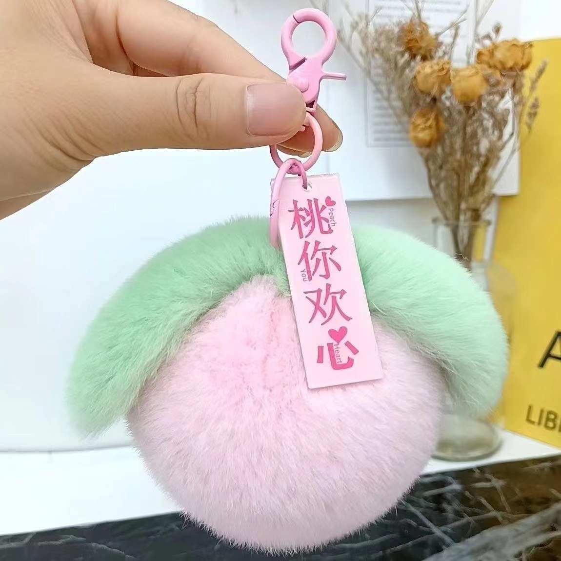 Mini lindo real Rex Piel de conejo pequeño caqui llavero del coche colgante al por mayor bola felpa mochila bolsa adornos regalo