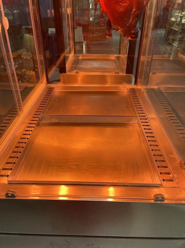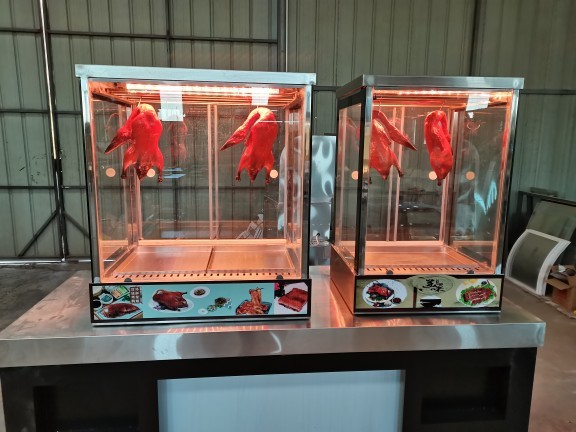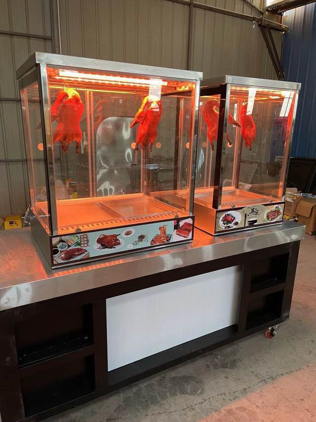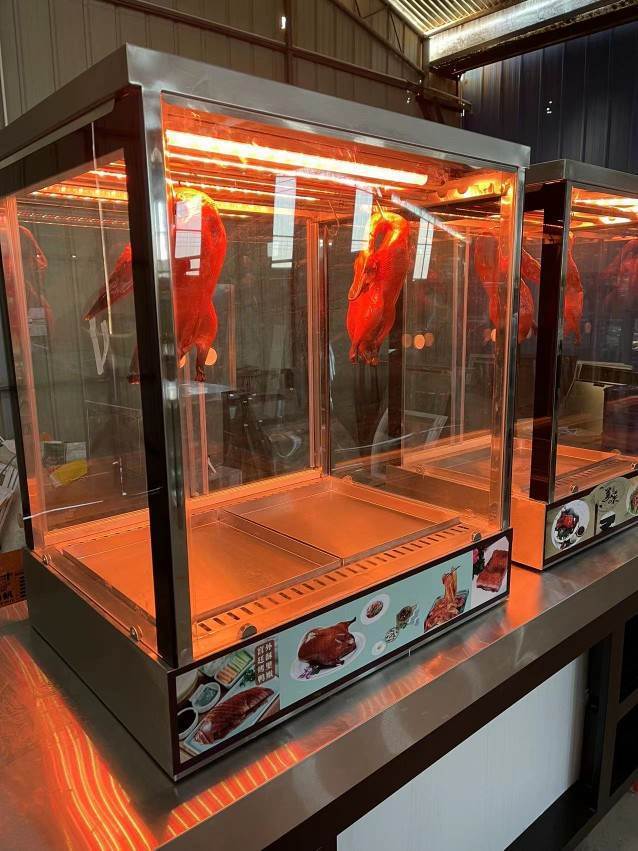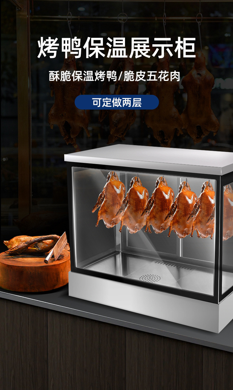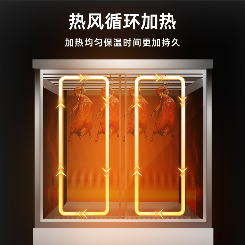 Gabinete de aislamiento de pato asado, gabinete de calefacción de escritorio comercial, gabinete de exhibición de aislamiento de pato asado, carne crujiente de patos