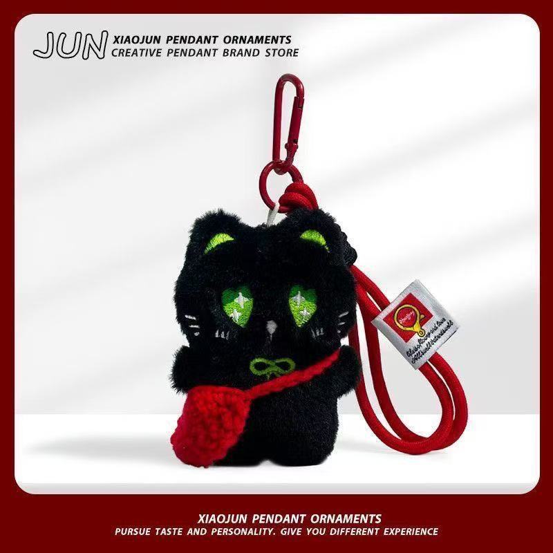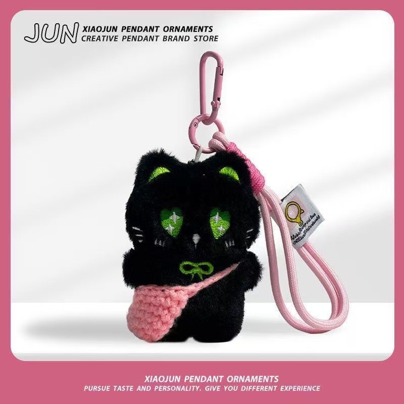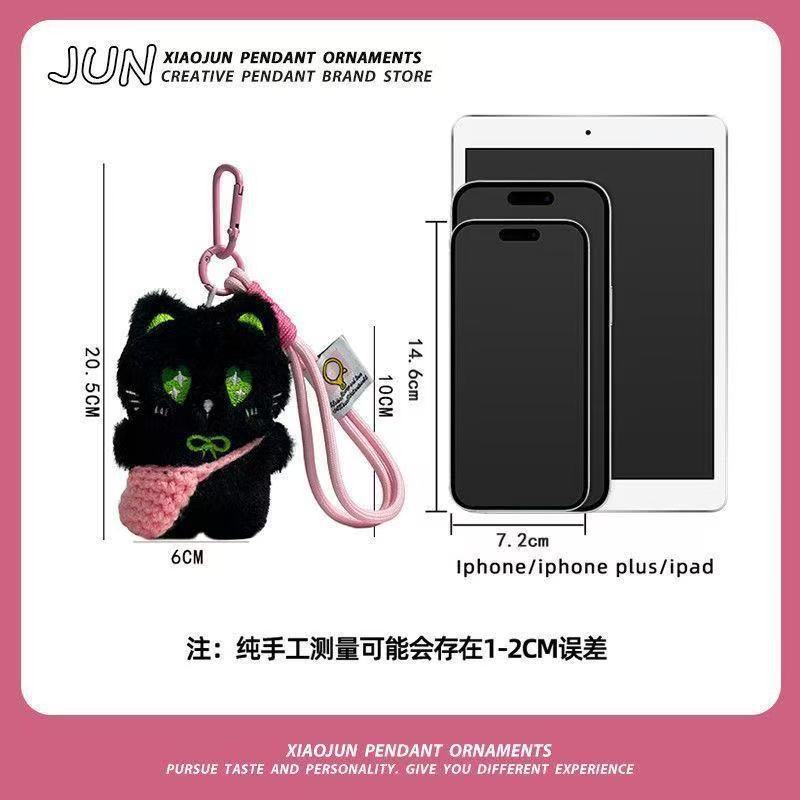 lindo felino de peluche, ojos negros grandes, muñecas, colgante, colgante, bolso, colgante, llavero chirriante diy