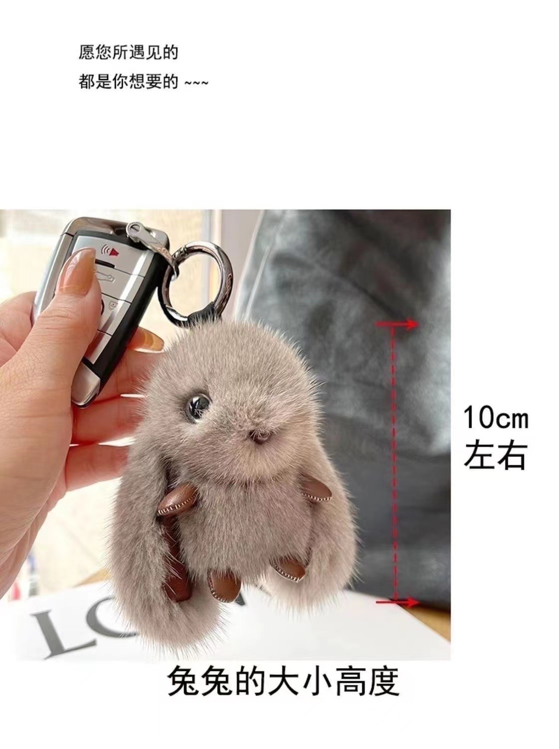Personalizada imitación de visón de peluche conejo hecho a mano colgante bolsas de alta calidad colgante llavero de automóvil regalo de cumpleaños