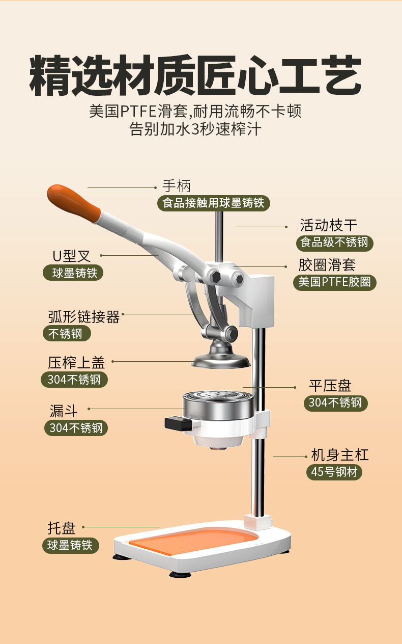 Juicer manual comercial de cabina plana prensa de naranja extrusora de fruta doméstica mano jugo de naranja extrusor especial