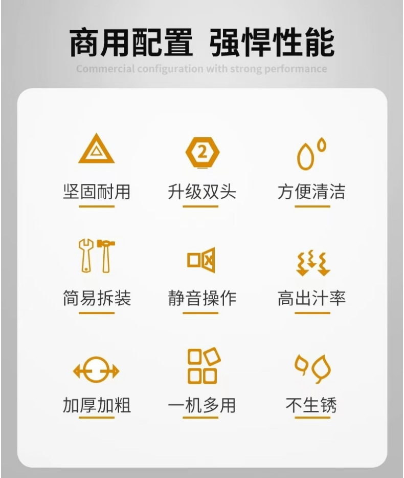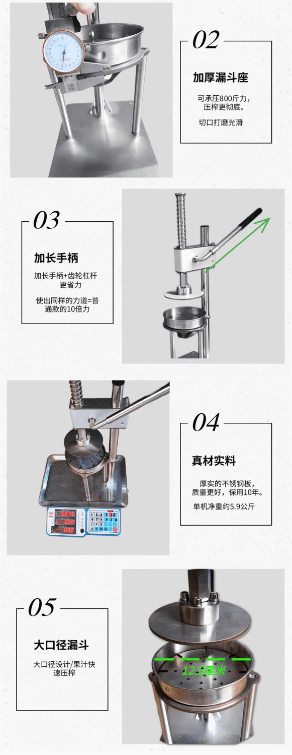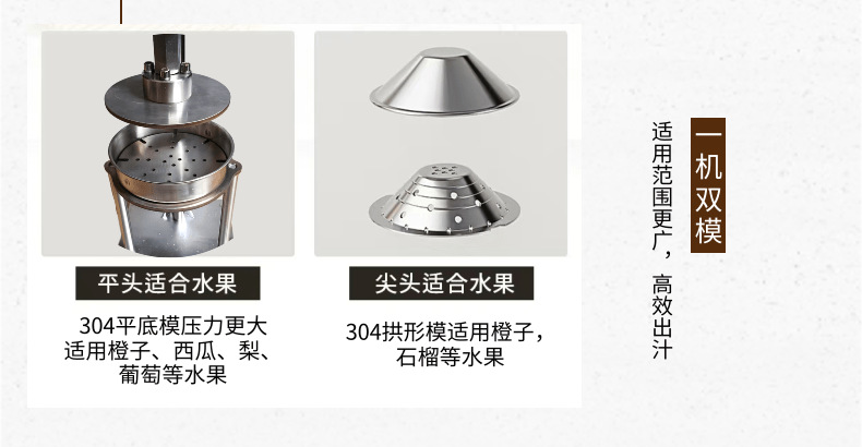 | Especificaciones | La prensa manual de jugo (molde de patrón de tornillo) tiene un buen efecto en la presión de naranjas, la prensa manual de jugo (molde de fondo plano de acero inoxidable), la prensa manual de jugo (molde de cabeza puntiaguda), la prensa manual de jugo (molde de cabeza puntiaguda + molde de fondo plano + molde de hilo), la prensa eléctrica de jugo (ahorro de esfuerzo) |