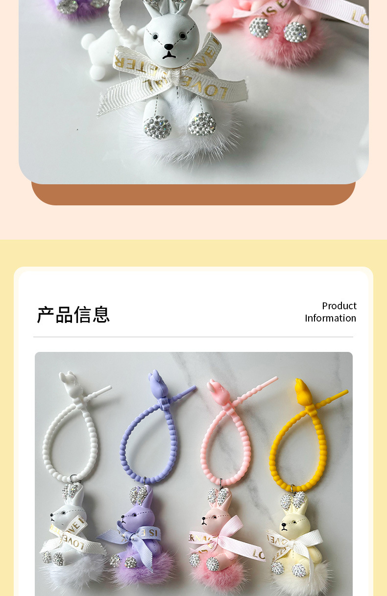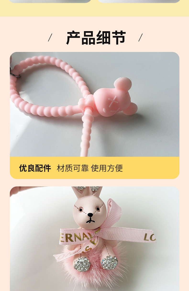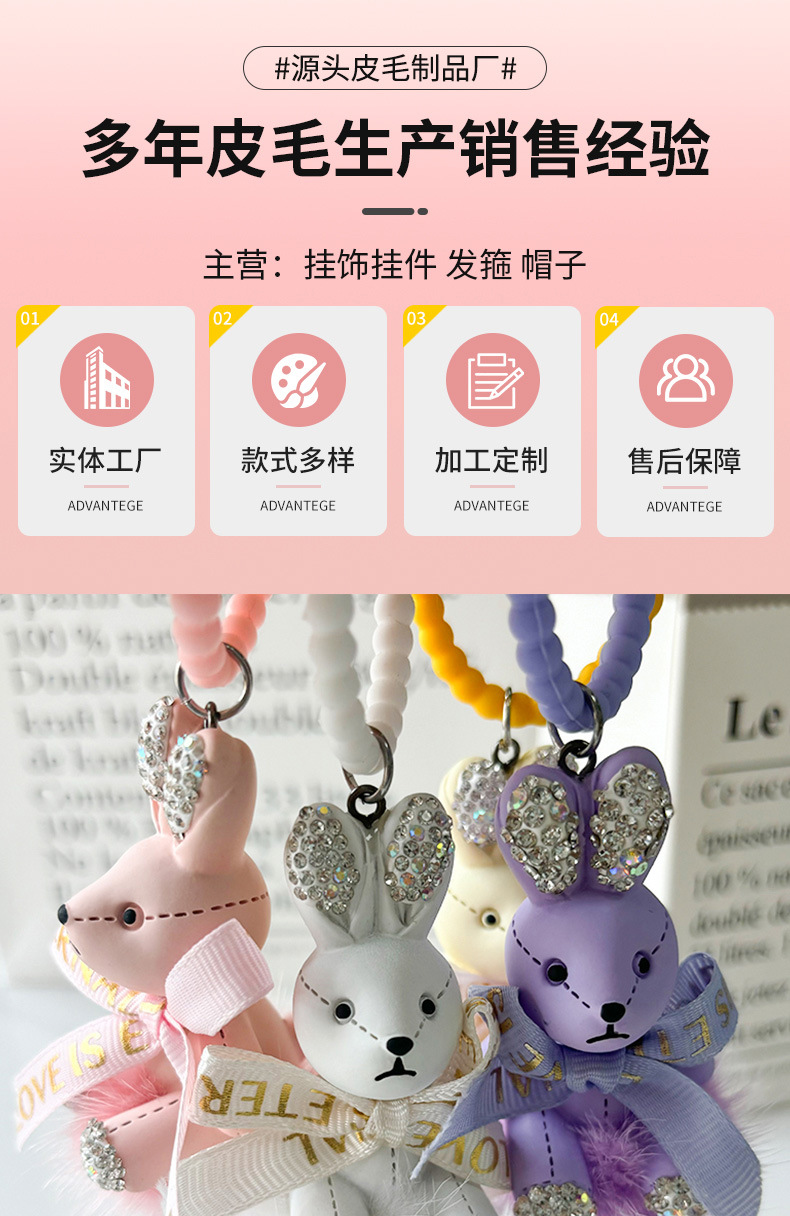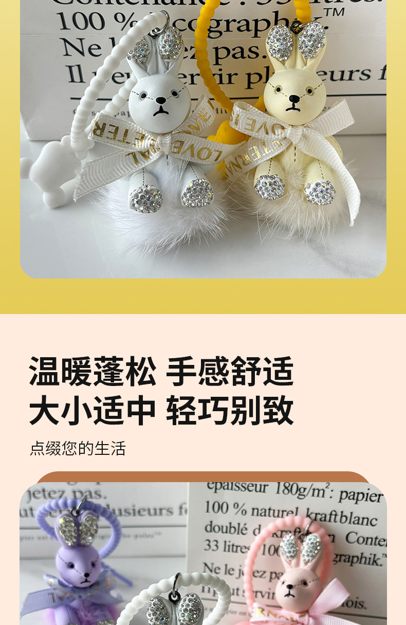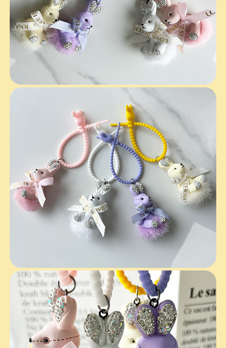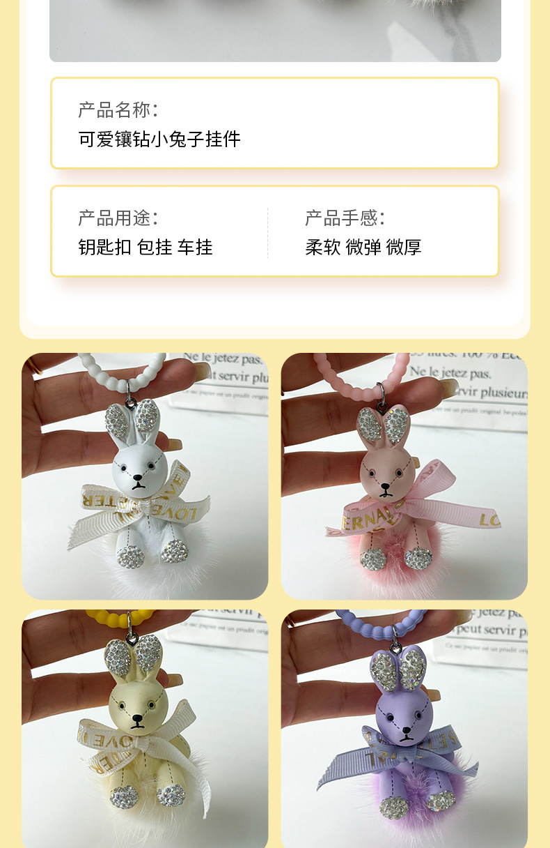 Colgante pequeño conejo llavero de automóvil arco colgante de pelo de visón delicada máquina de garra de dibujos animados pequeño colgante de regalo
