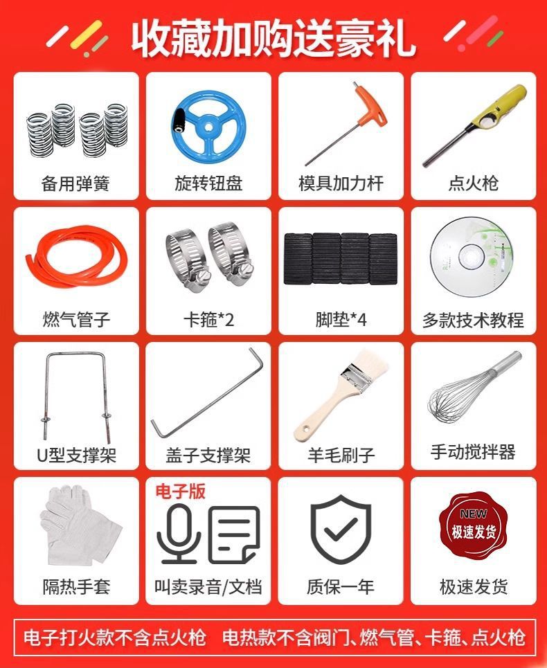 | Especificaciones | Máquina de rollo de huevo de fuego manual, máquina de rollo de huevo de fuego eléctrico |
