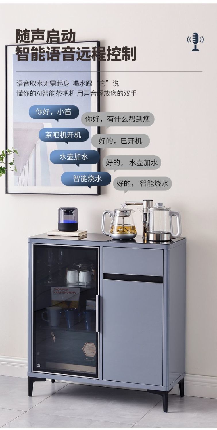 Máquina de té inteligente de voz de alta calidad doméstica totalmente automática máquina de infusión de té de madera sólida anti-derrame de agua de lujo ligero gabinete de agua potable
